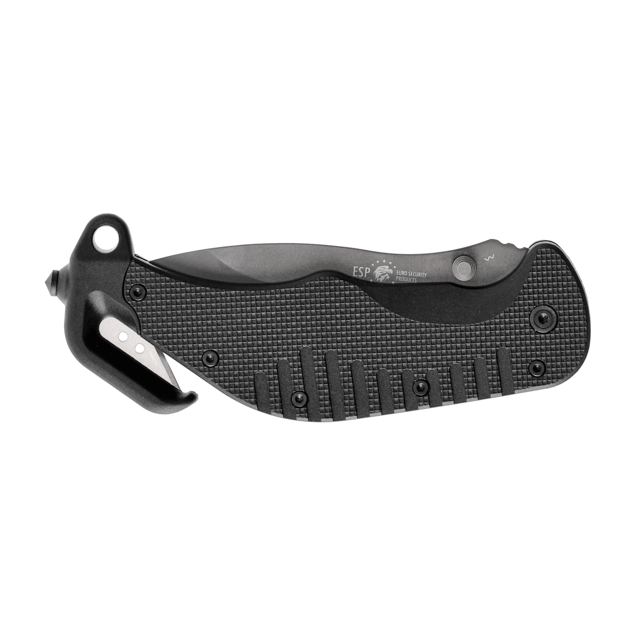 ESP EK-01 to nóż składany o unikalnej konstrukcji, łączącej cechy standardowego noża, przecinaka do kajdanek tekstylnych oraz narzędzia do awaryjnego rozbijania szyb.
