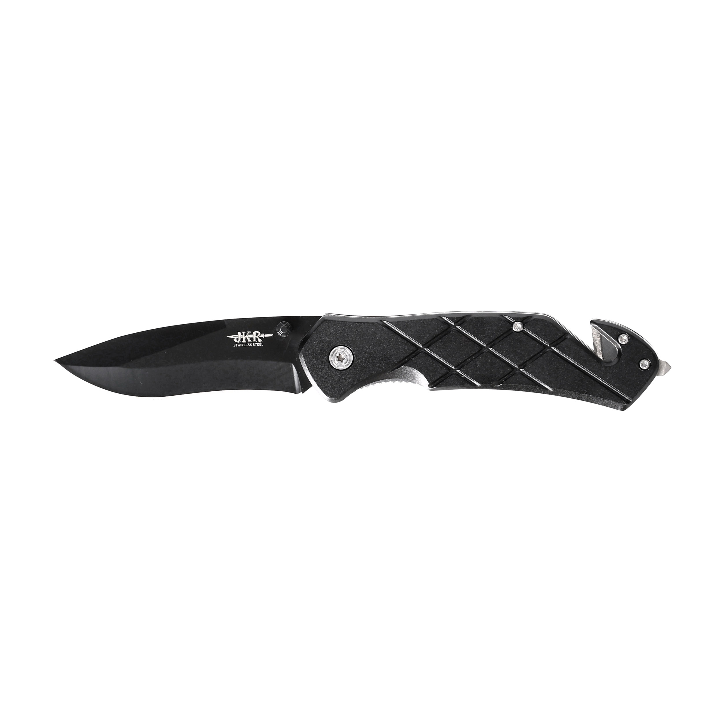 Joker JKR323 to składany nóż ratowniczy, wyposażony w głownię ze stali nierdzewnej 440, lekkie okładziny z anodowanego aluminium, ostrze do cięcia pasów bezpieczeństwa oraz zbijak do awaryjnego rozbicia szyby.