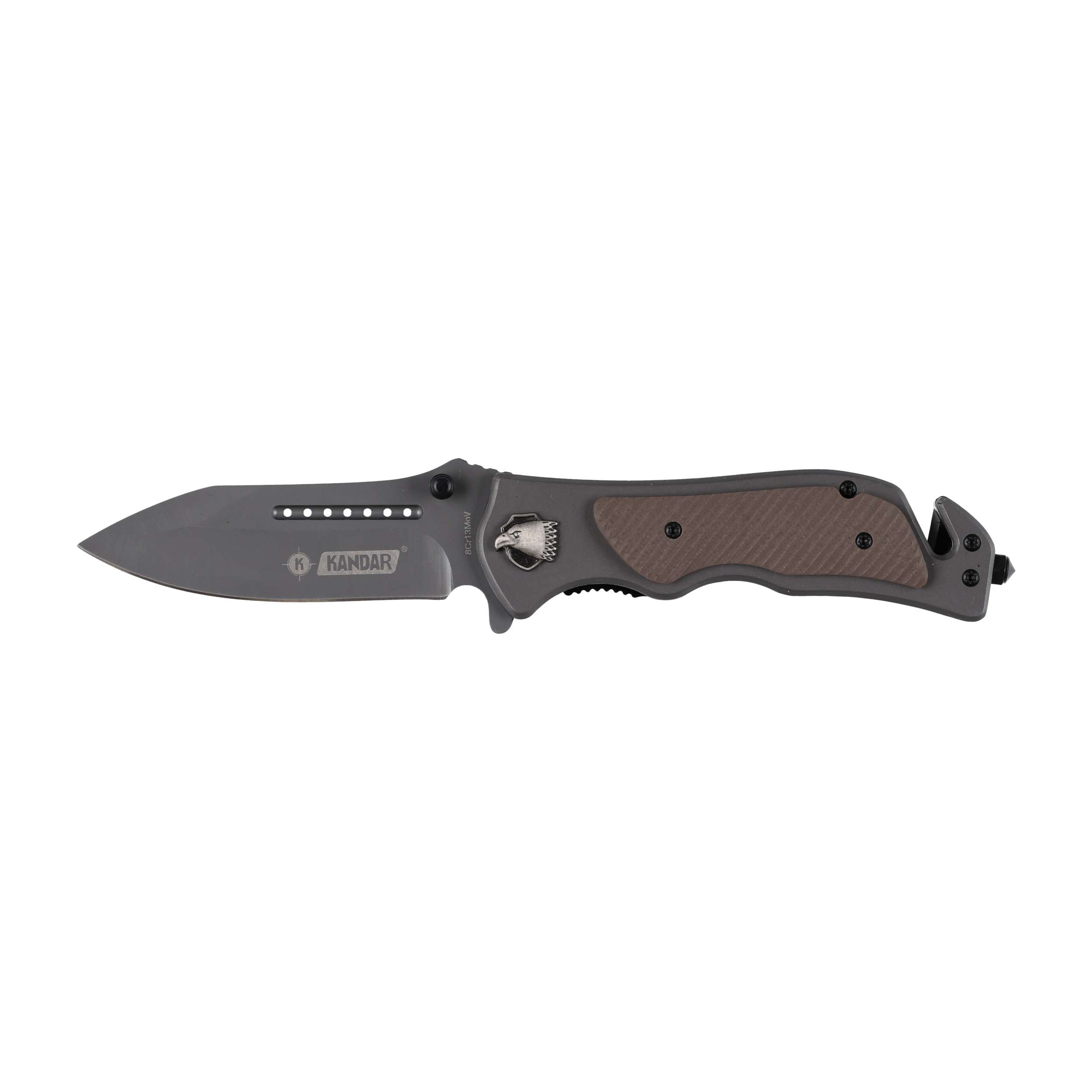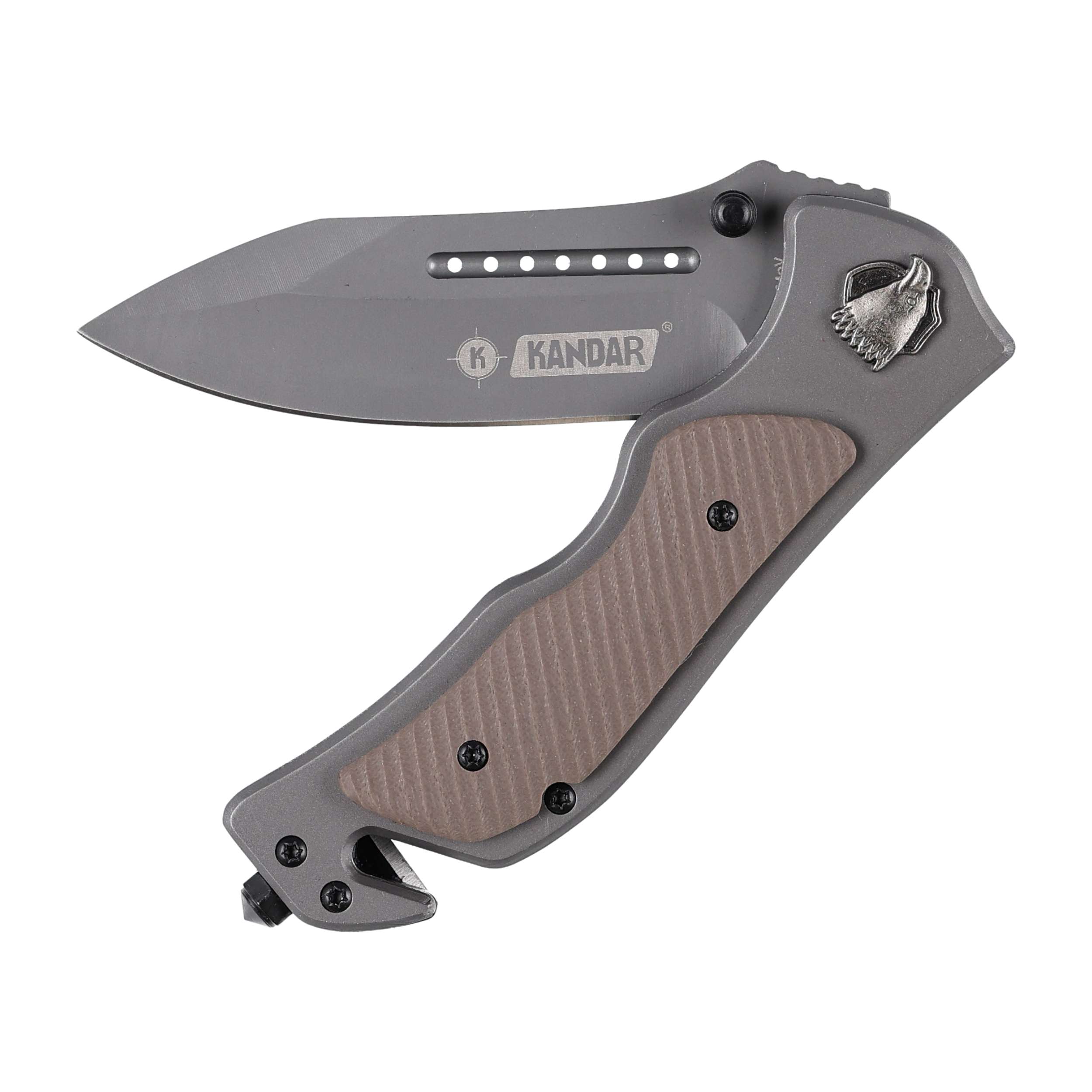 Folder Kandar N174 można traktować jako nóż ratowniczy. Producent wyposażył go bowiem w nóż do cięcia pasów i zbijak do szyb. Oba narzędzia umieszczono w dolnej części rękojeści.