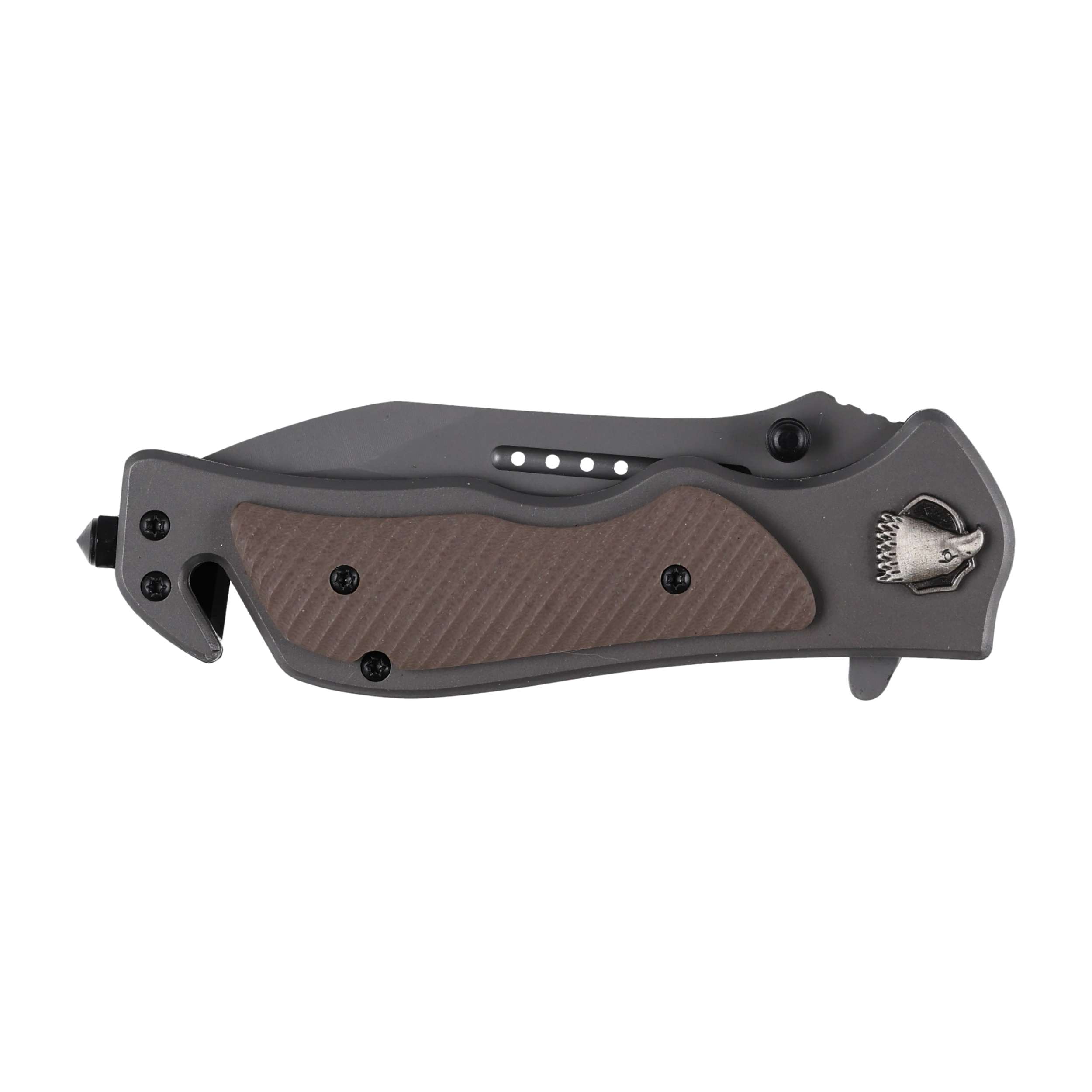 Nóż składany Kandar N174 to narzędzie solidne i poręczne. Folder ma charakter noża ratowniczego. Wskazuje na to ostrze do cięcia pasów oraz zbijak do szyb.