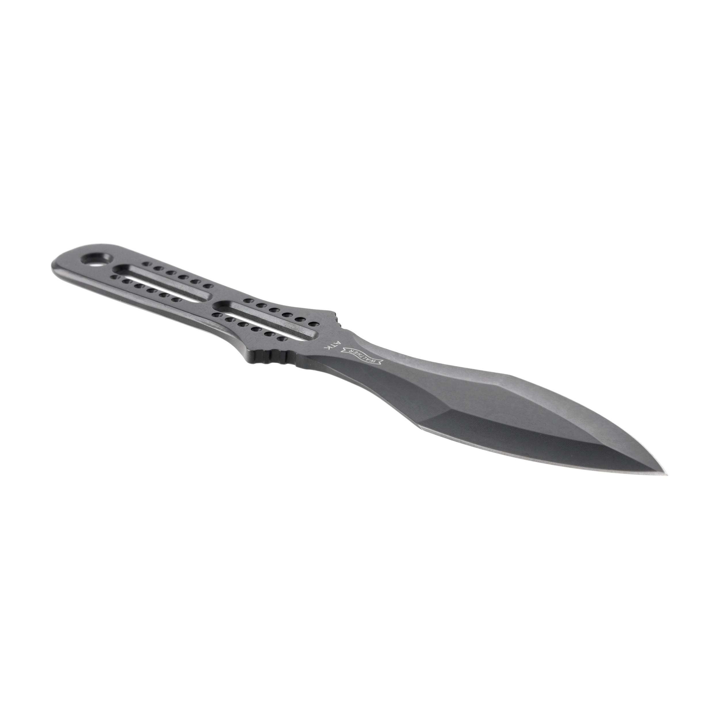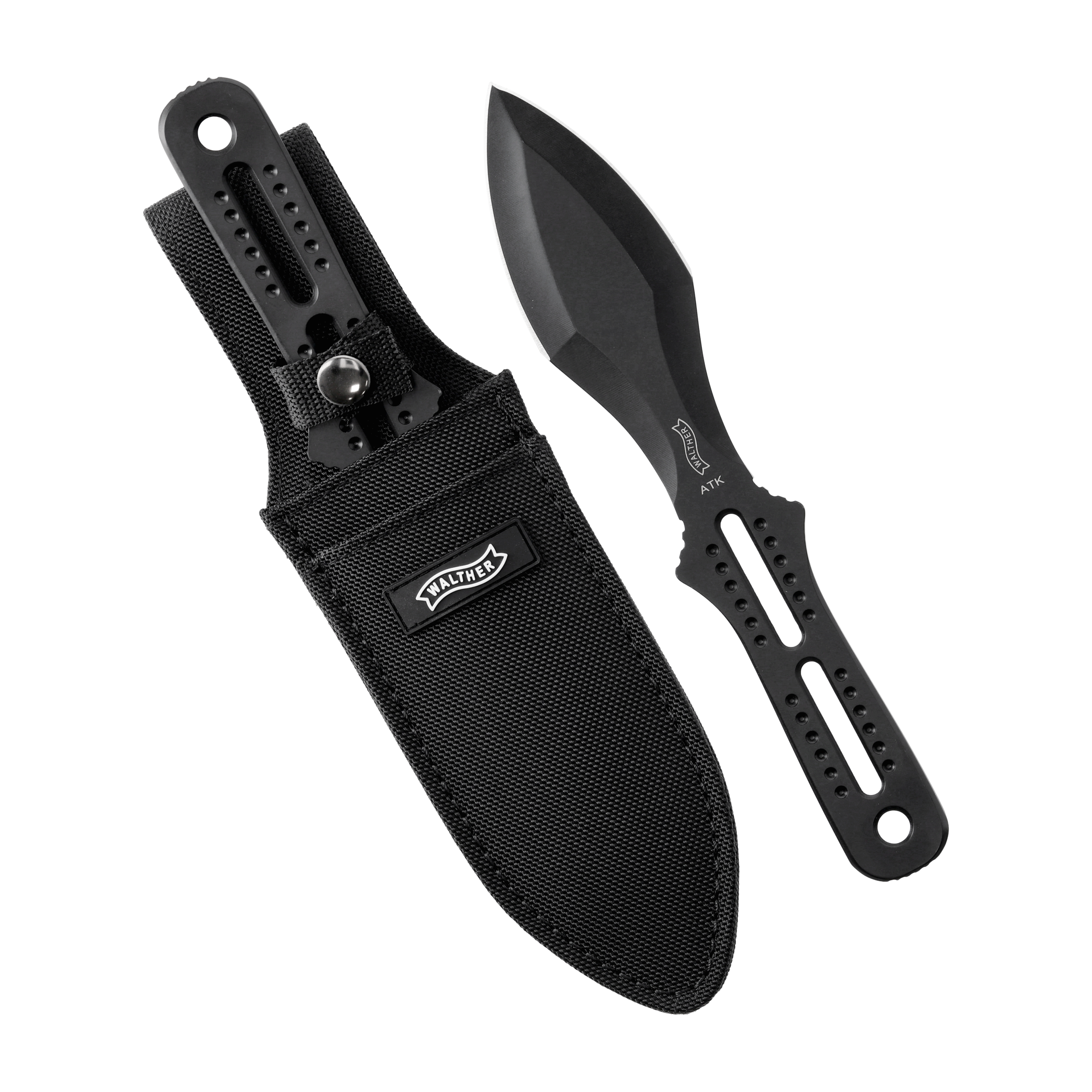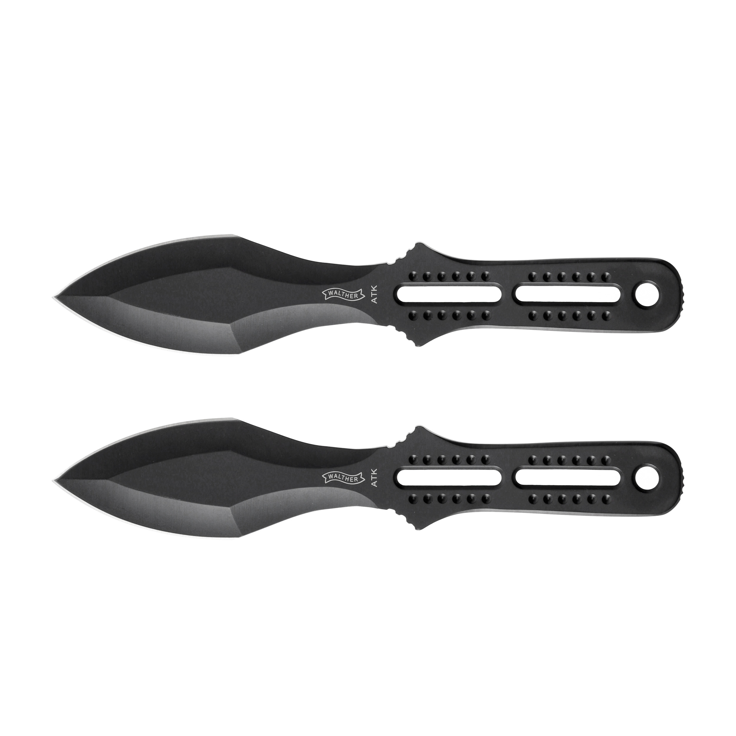 Noże do rzucania Walther ATK powstały z jednego kawałka stali, dzięki czemu charakteryzują się dużą wytrzymałością. Noże „rzutki” są masywne a specjalnie wycięte podłużne otwory w rękojeści, powodują, że środek ciężkości został przesunięty bliżej ostrza, dzięki czemu odpowiednie wyważenie noża ułatwia celne i skuteczne trafienie w cel. Powierzchnia noży została pokryta czarną warstwą ochronną, która niweluje odbicia światła.