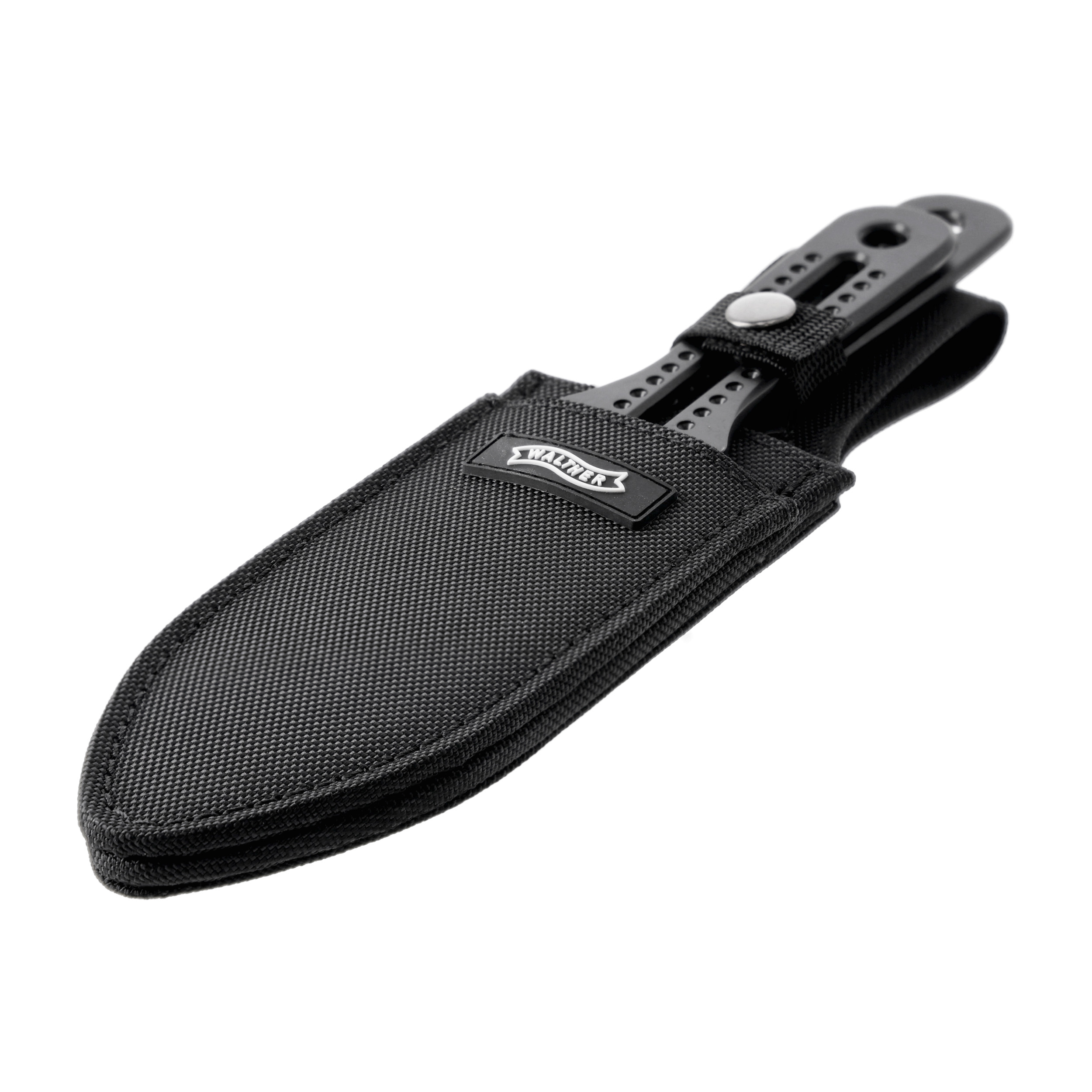 Na rękojeści znajduje się karbowanie oraz uwypuklenia, które zapewniają pewny chwyt w trakcie wykonywania rzutu, co zwiększa bezpieczeństwo użytkownika i osób postronnych. Wraz z nożami w zestawie znajduje się nylonowa pochewka, która pozwala na bezpieczne przenoszenie i przechowywanie noży do rzucania Walther ATK.