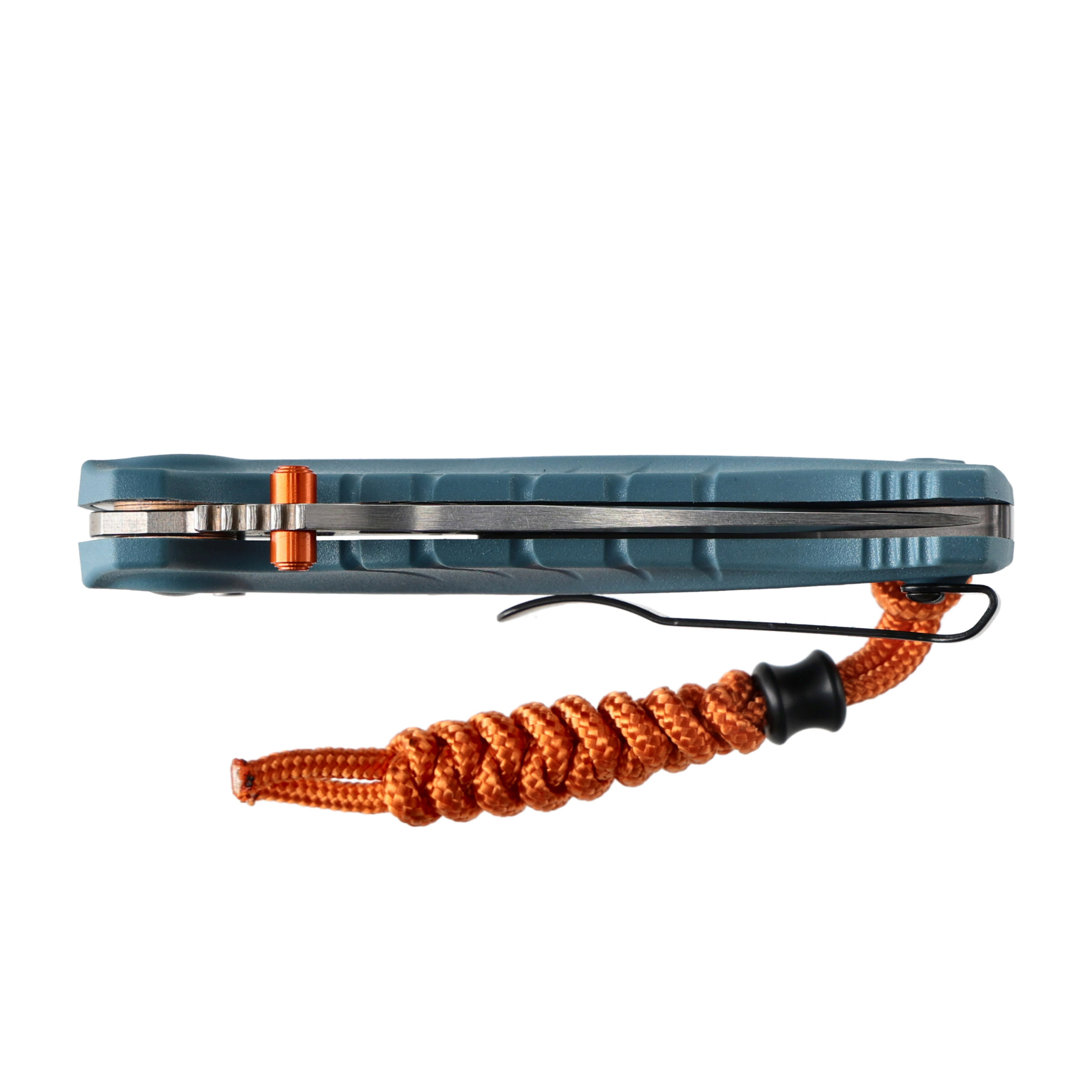 W rękojeści znajduje się również otwór umożliwiający mocowanie linki lub oplotu z paracordu. Razem z folderem Benchmade użytkownik otrzymuje temblak z paracordu w kolorze pomarańczowym.