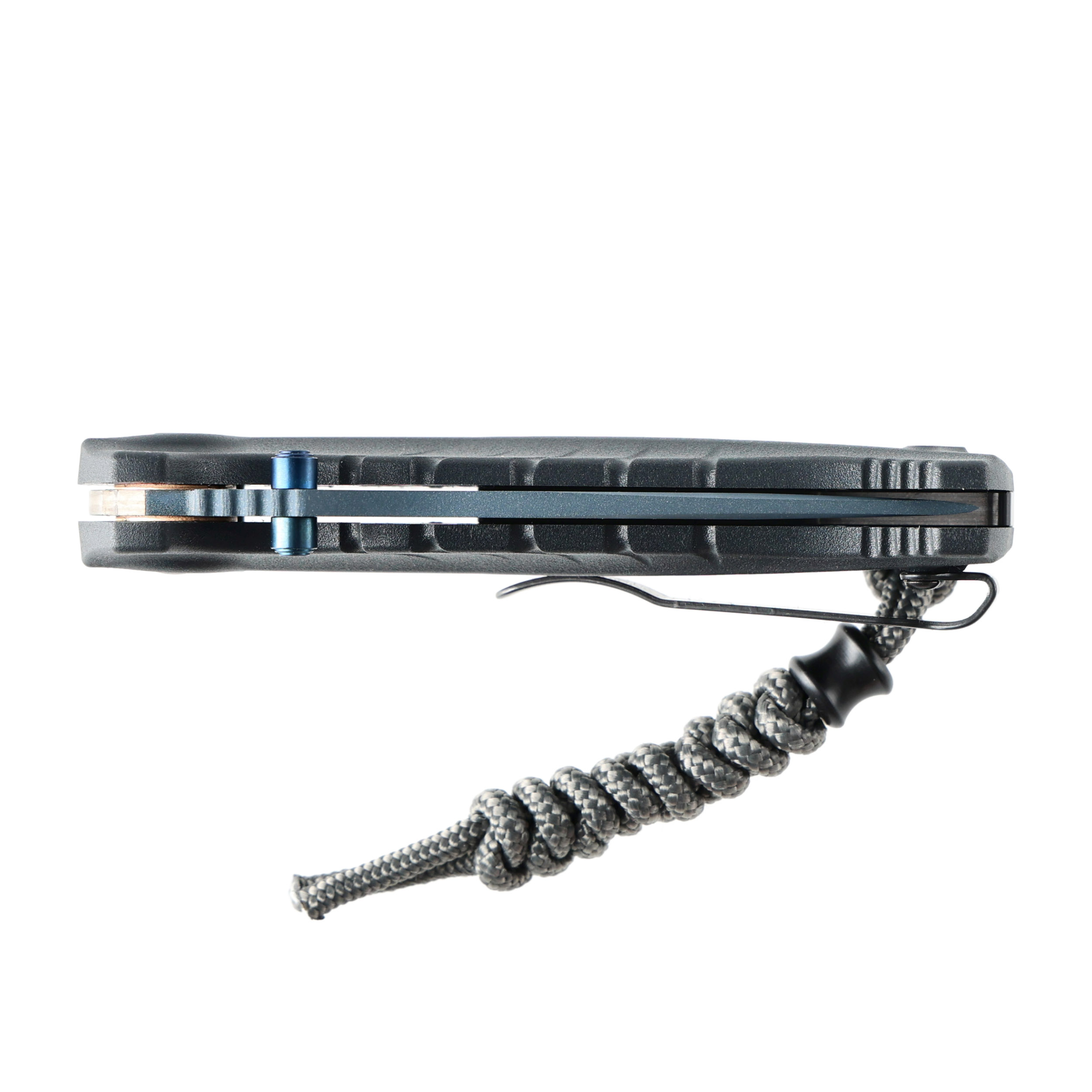 W rękojeści znajduje się również otwór umożliwiający mocowanie linki lub oplotu z paracordu. Razem z folderem Benchmade użytkownik otrzymuje temblak z paracordu w kolorze pomarańczowym.
