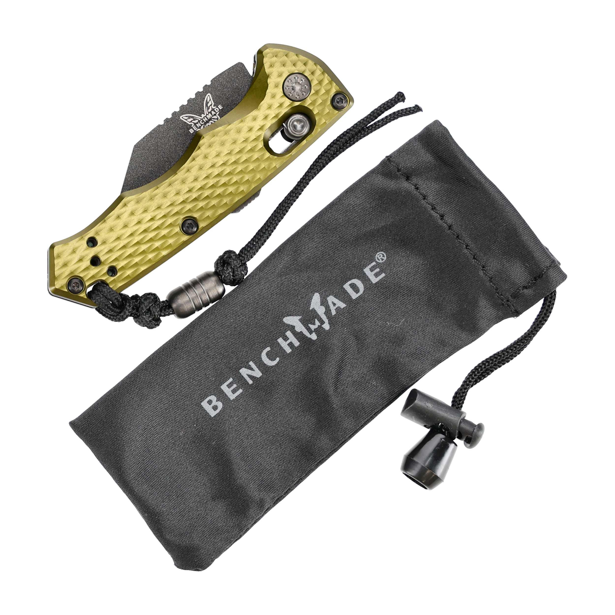 Ostrze można wygodnie rozłożyć jedną ręką, dzięki suwakowi znajdującemu się na górnej części rękojeści. Automatyczna blokada głowni to oczywiście AXIS-lock, flagowy mechanizm marki Benchmade, ceniony za ogromną odporność na obciążenia, niewrażliwość na zabrudzenie oraz łatwość użytkowania.