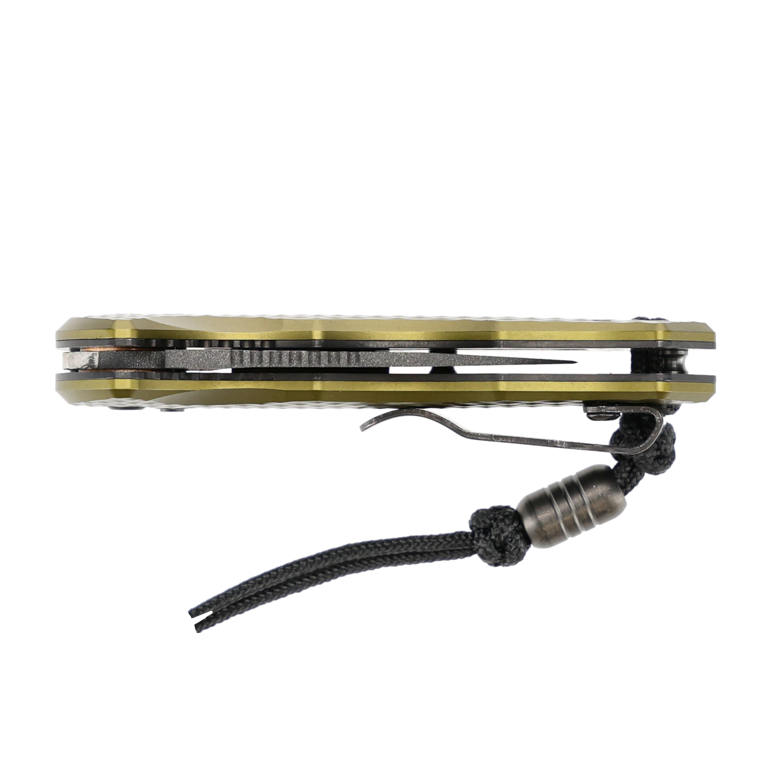 Dzięki zastosowaniu okładzin z trwałego, zielonego aluminium obrabianego metodą CNC, konstrukcja noża jest niezwykle lekka (65 g) i znacznie bardziej wytrzymała. Wyprofilowana rękojeść zapewnia pewny i bezpieczny chwyt w trakcie pracy.