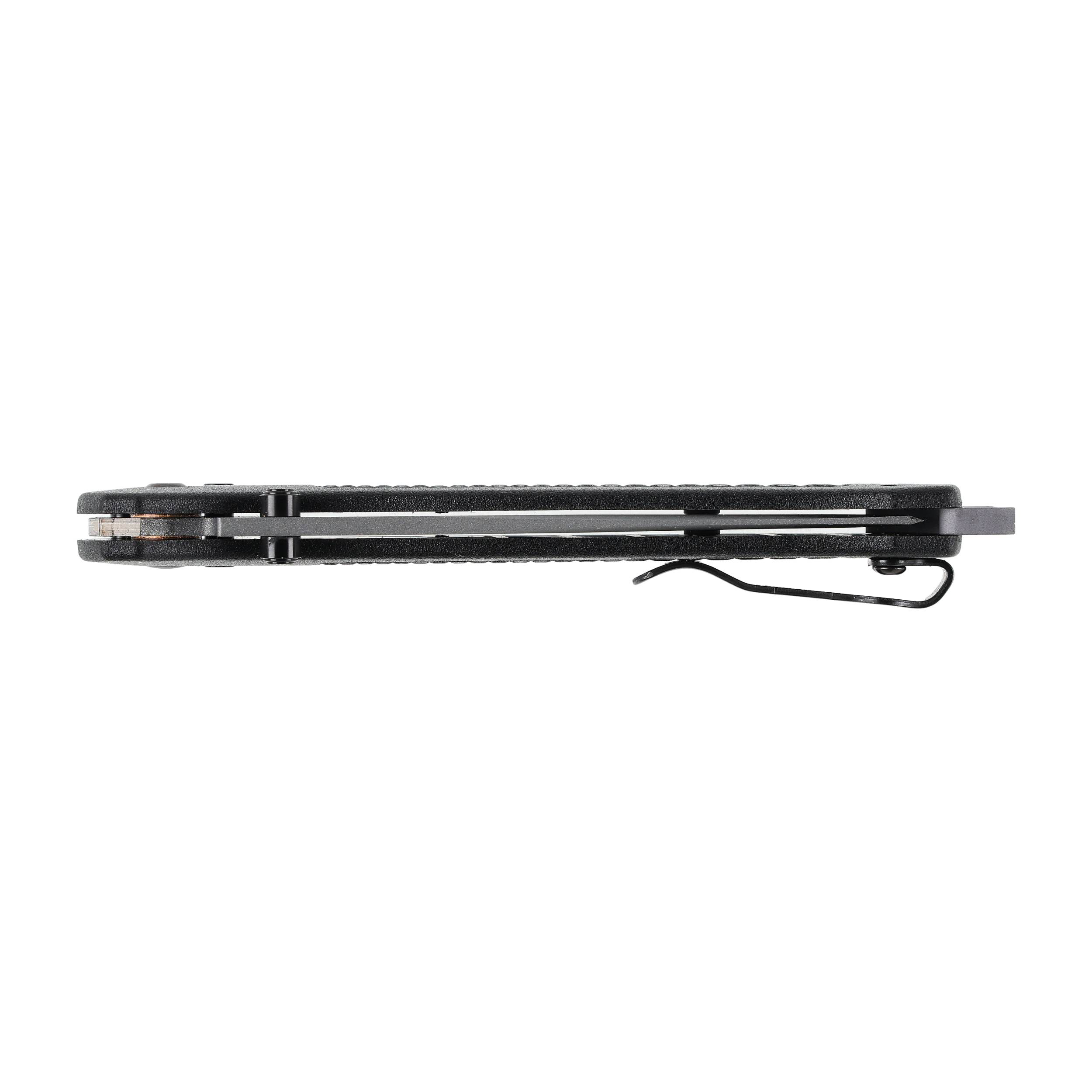Antypoślizgowa faktura rękojeści i jej poszerzenie u nasady zapewniają pewny chwyt noża, oraz zapobiegają przemieszczaniu dłoni w trakcie pracy. Szeroki klips z opcją przełożenia (lewa/prawa), umożliwia przenoszenie noża w kieszeni lub oporządzeniu taktycznym.
