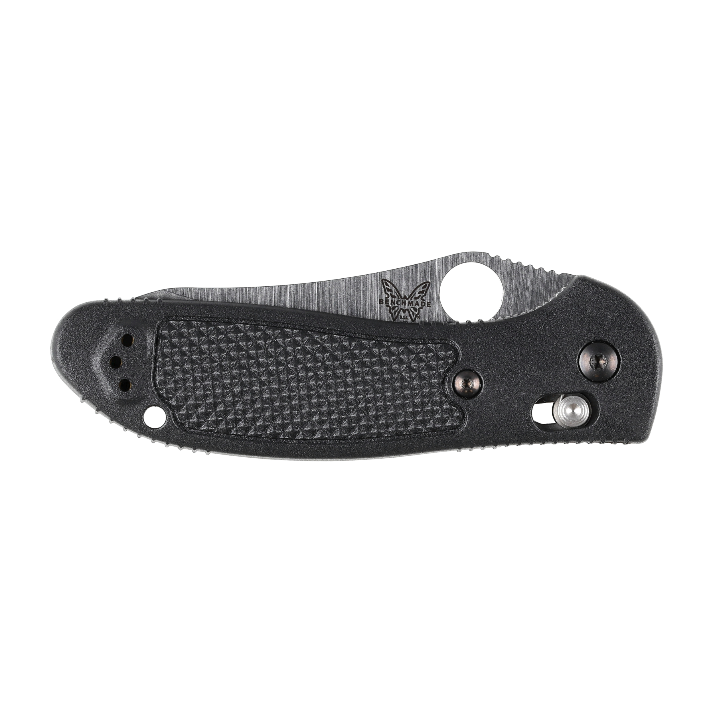 Za bezpieczeństwo pracy odpowiada flagowy mechanizm Benchmade, dwustronna blokada Axis-lock, ceniona za ogromną wytrzymałość mechaniczną, odporność na zabrudzenie oraz wygodę obsługi dla prawo i leworęcznych użytkowników.