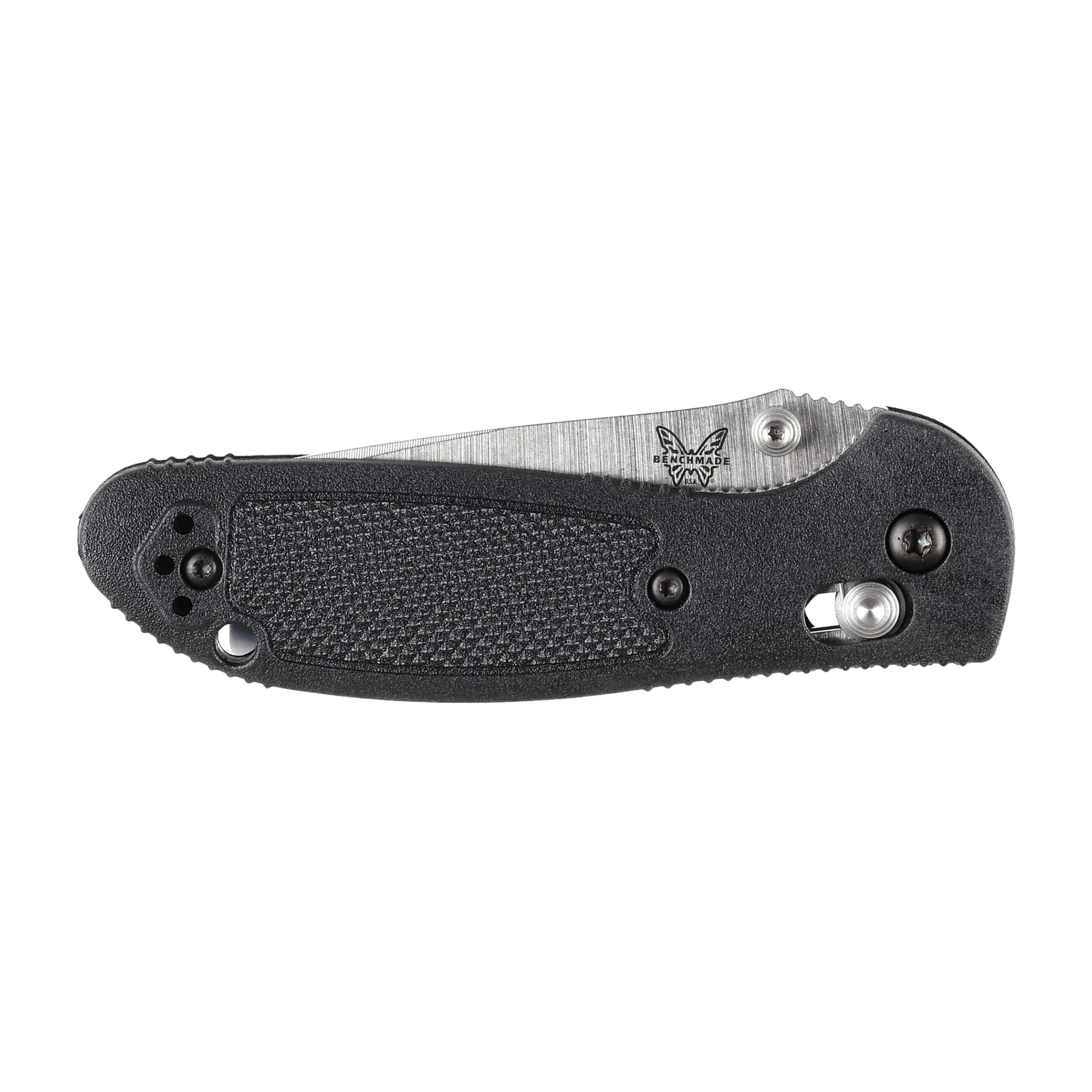 Benchmade 556-S30V Mini Griptilian ma klasyczną użytkową głownię drop-point z płaskim szlifem. Ostrze wykonano z amerykańskiej stali nierdzewnej CPM-S30V zahartowanej do twardości 58-60 HRC. Kształt głowni, rodzaj szlifu oraz jakość zastosowanej stali powodują, że ostrze długo utrzymuje znakomitą ostrość roboczą oraz ma wybitne właściwości tnące.