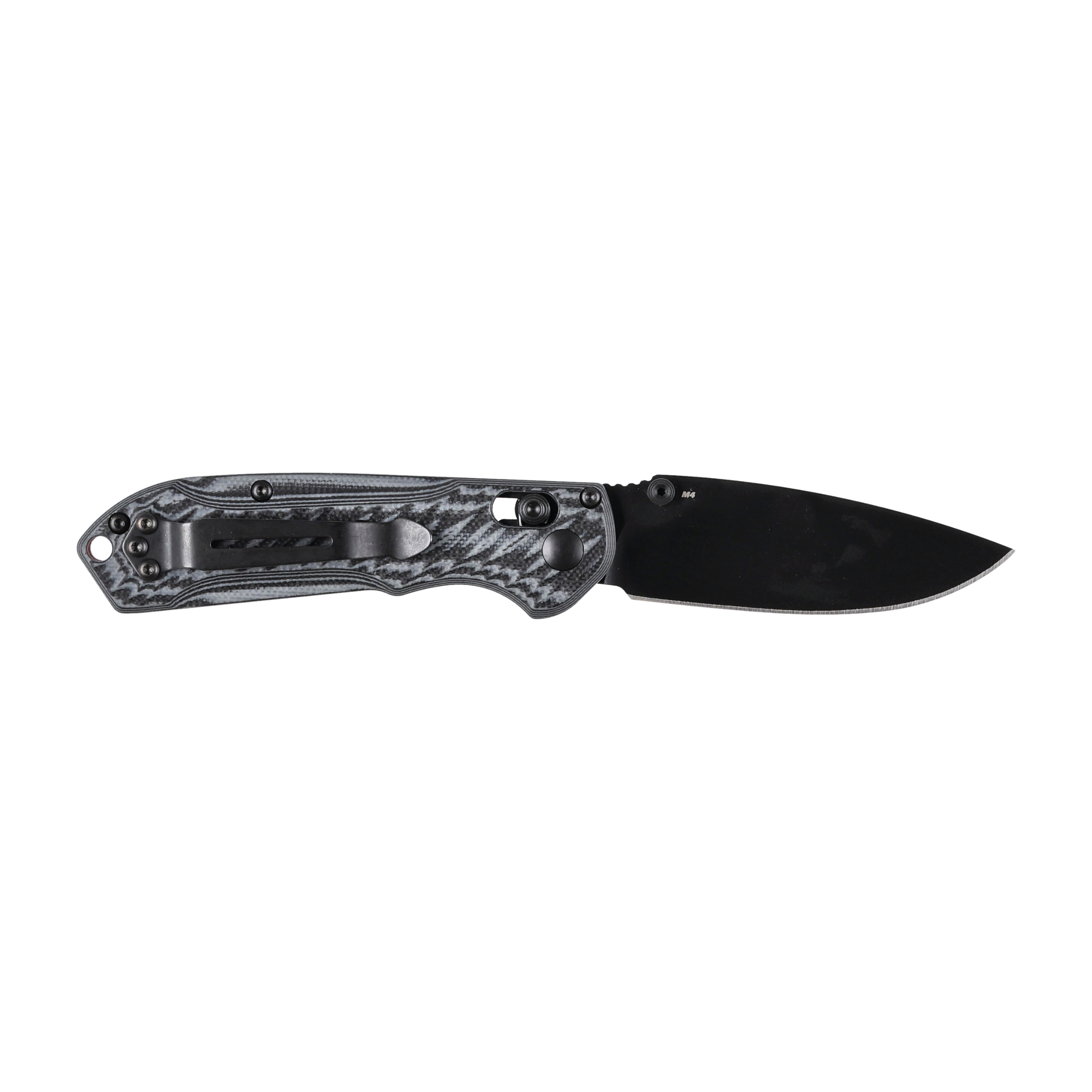 Benchmade 565-1 Mini Freek to składany nóż codziennego użytku (EDC) w wersji premium, wyposażony w głownię ze stali CPM-M$, elegancką rękojeść z tworzywa G-10 w kolorze czarnym i szarym, tworzącym atrakcyjny wzór na okładzinach.