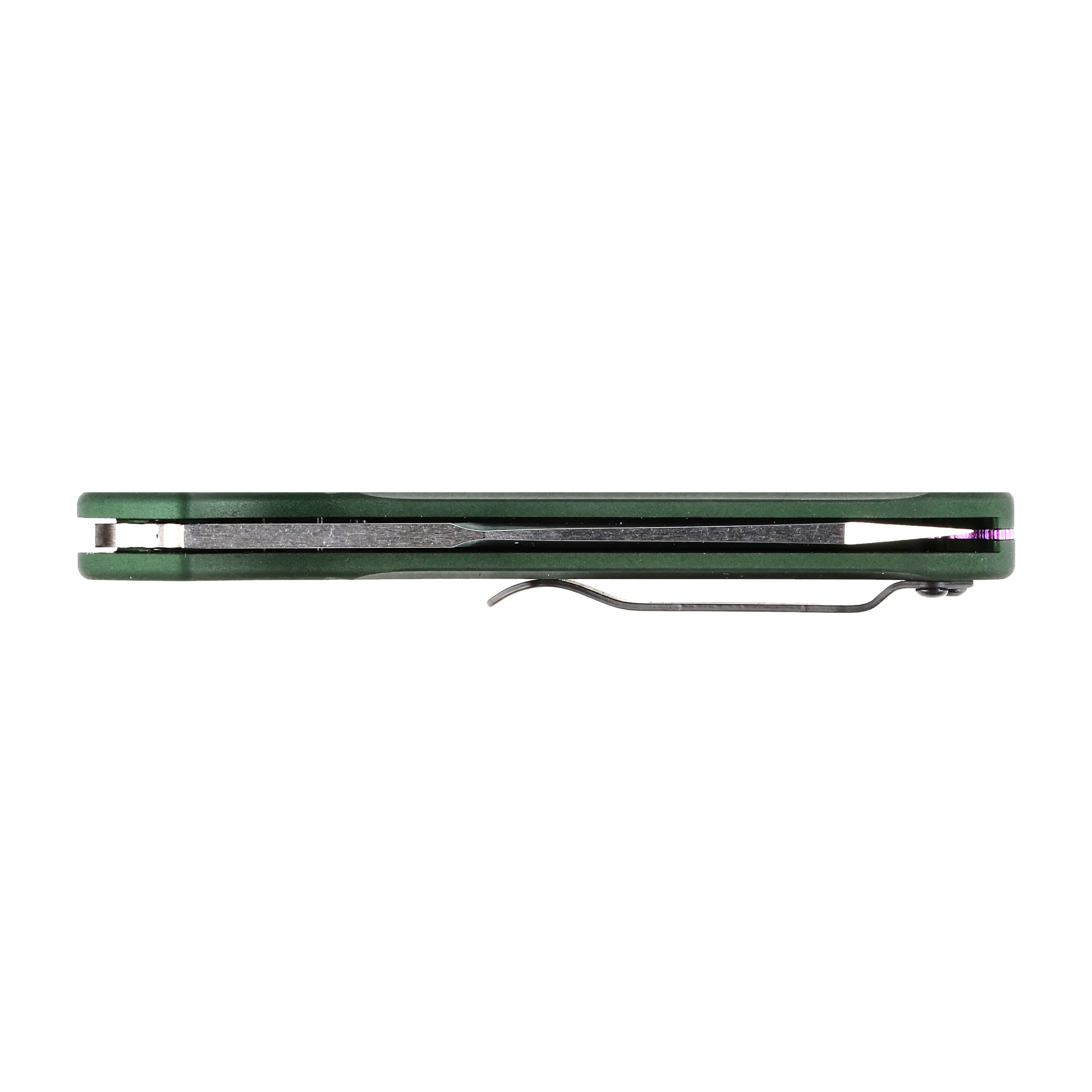 Wkładka z anodowanego na kolor fioletowy aluminium efektownie kontrastuję z ciemną kolorystyką noża i bez wątpienia przyciągają uwagę każdego miłośnika noży.