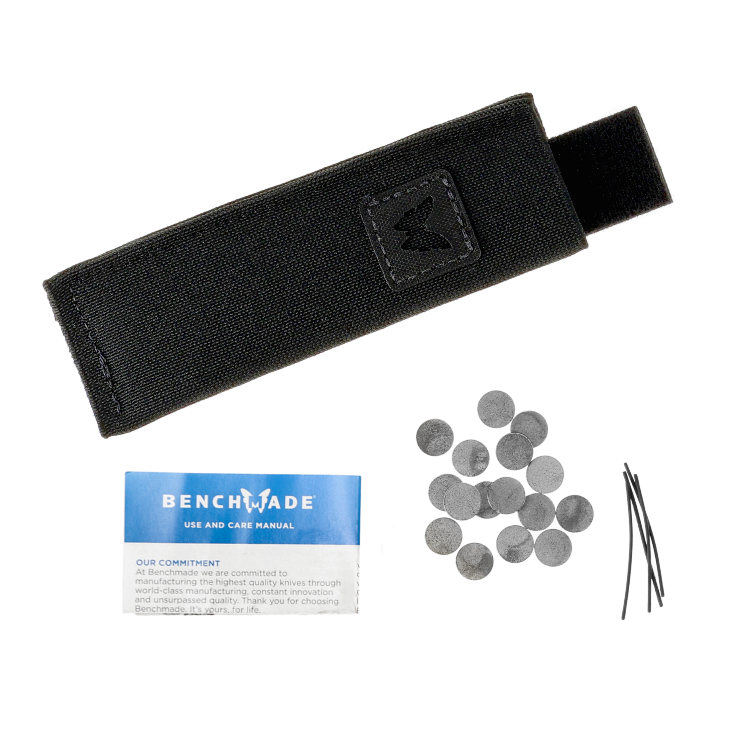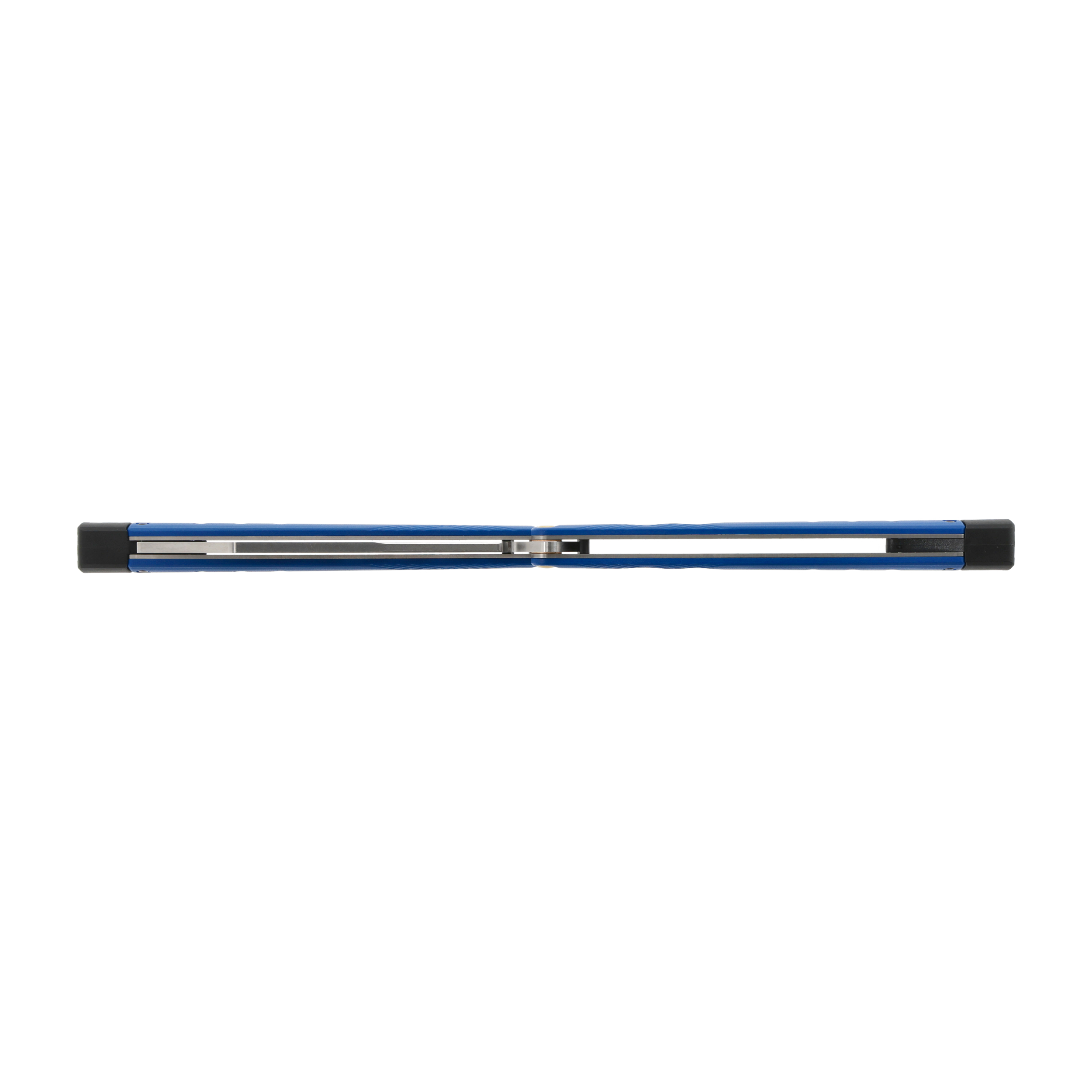 Rękojeść w charakterystycznym niebieskim kolorze informuje użytkownika, iż korzysta z bezpiecznej, treningowej wersji noża. Oprócz ostrza reszta elementów motylka Benchmade jest identyczna z wersją ostrą klingi.
