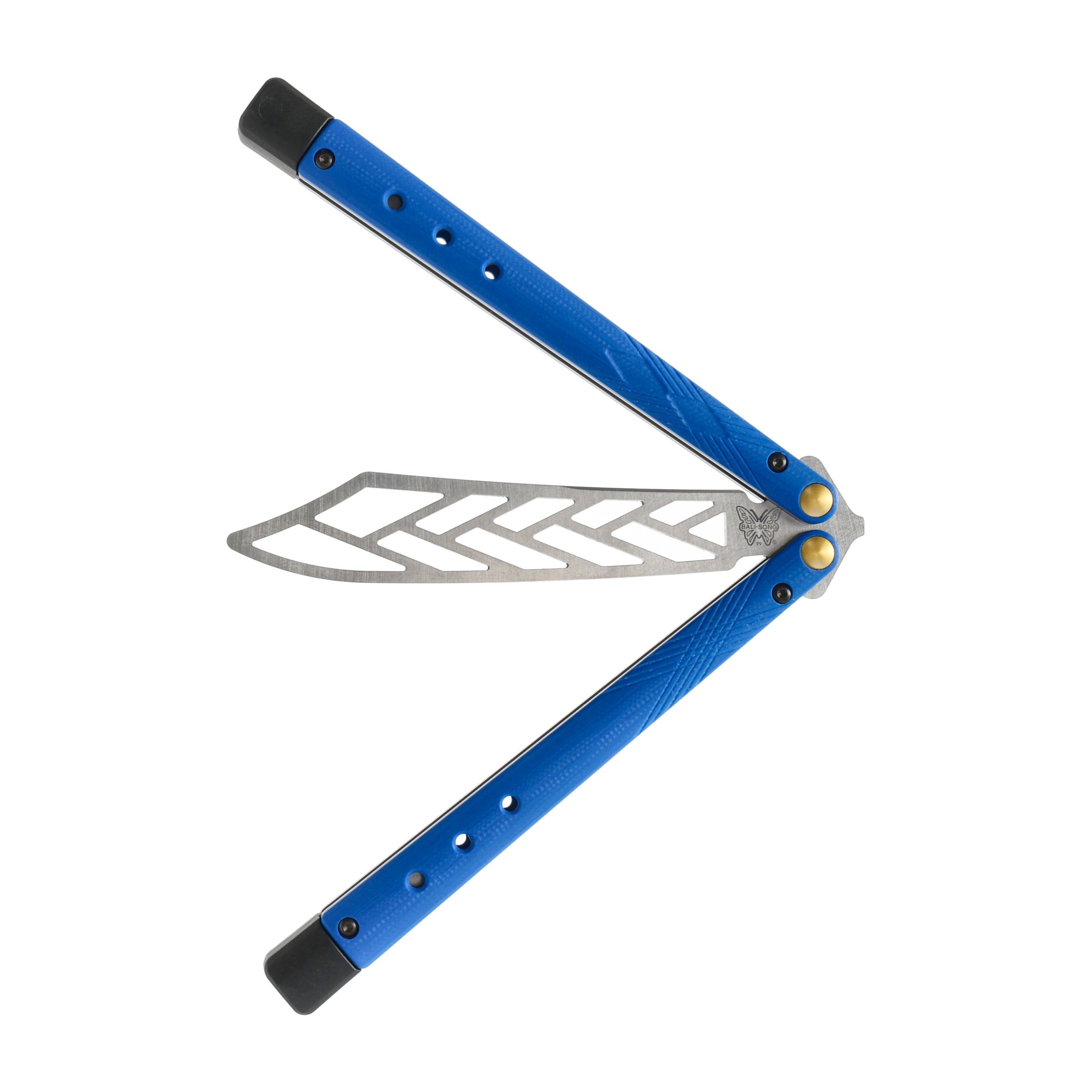 Balisong ma szkieletowe ostrze o długości 116 mm i profilu Scimitar, nawiązującym do klasycznych konstrukcji noży motylkowych, wykonane ze stali nierdzewnej 440C.