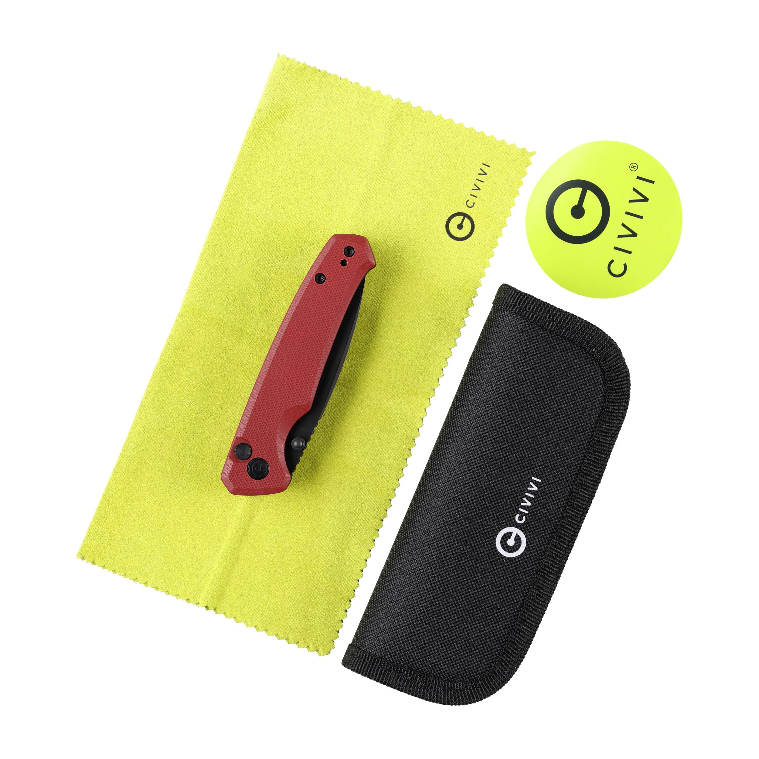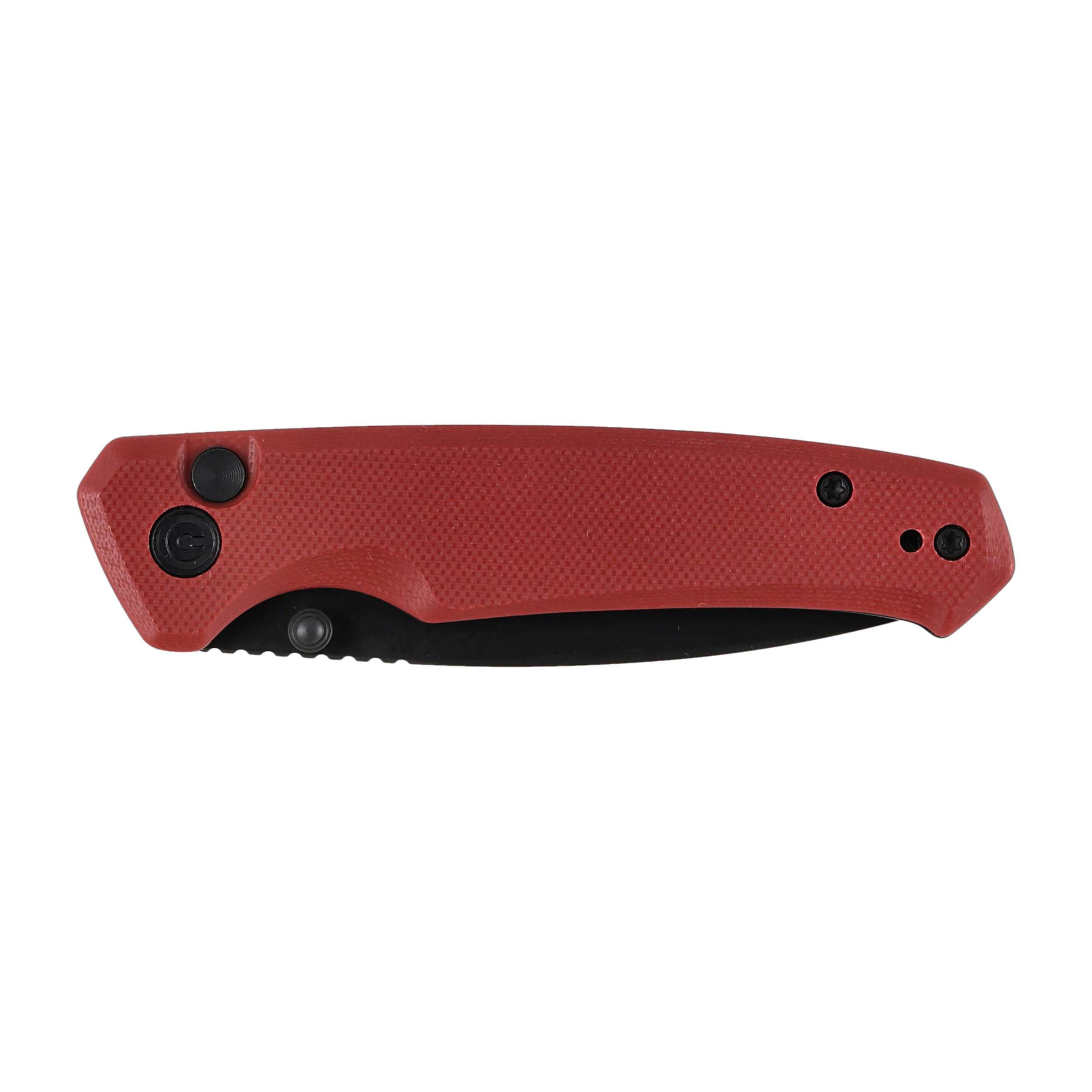 Rękojeść Civivi Altus wykonano z zabarwionego na czerwonego tworzywa G10. Ten kompozytu z włókna szklanego i syntetycznej żywicy jest lekki i niepodatny na uszkodzenia mechaniczne. Wygładzone krawędzie okładzin oraz podcięcie na palec (fore finger groove) poprawia pewność uchwytu i sprawiają, że nóż dobrze leży nawet w zmęczonych i spoconych dłoniach. Dzięki otwartej konstrukcji (open backed) narzędzie można czyścić i oliwić bez większych problemów.