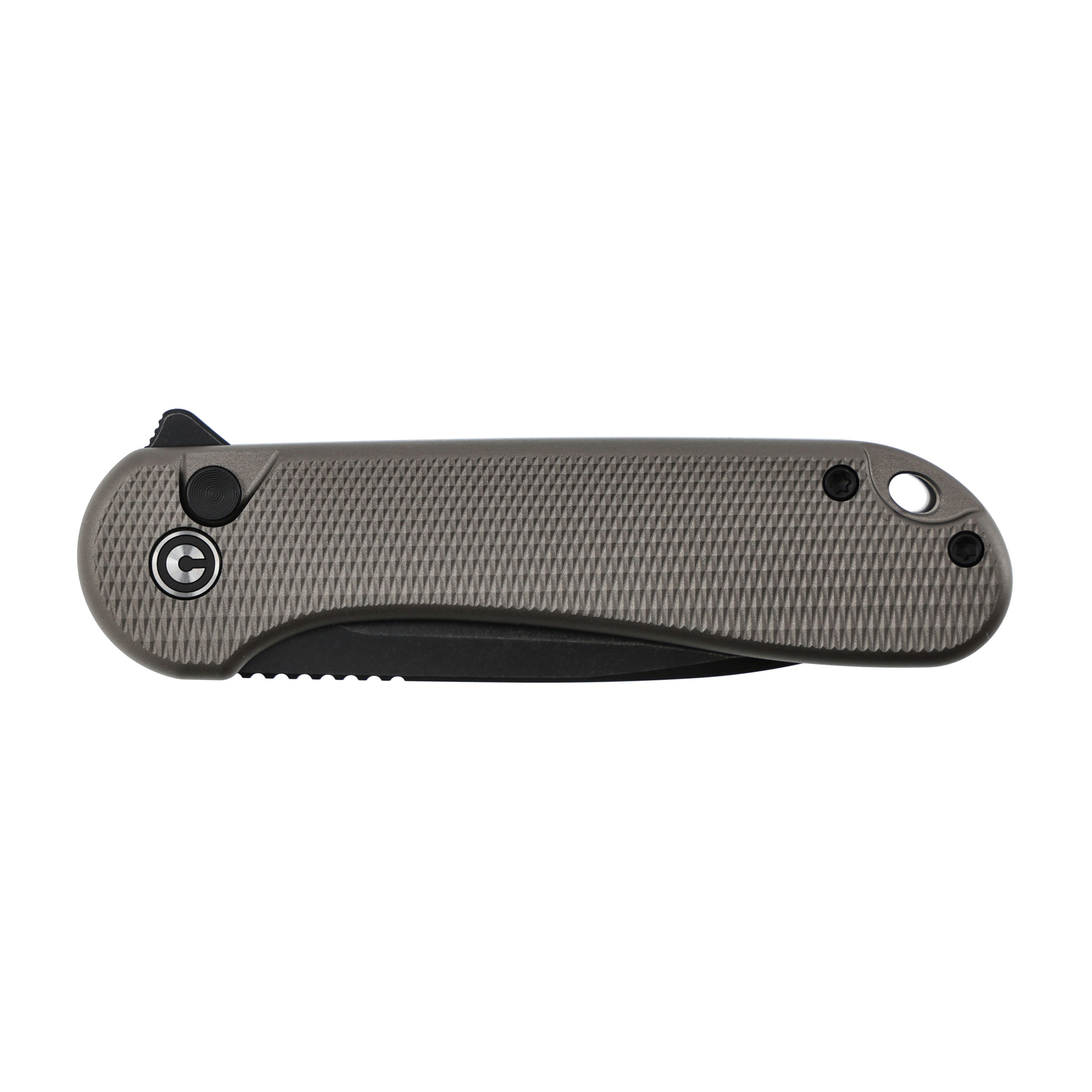 Rękojeść noża wykonana jest z aluminium i ma naniesiony wzór Diamond Pattern. Otwarta konstrukcja open-backed z tulejami dystansowymi zmniejszyła wagę i ułatwiła czyszczenie. Oś ostrza zdobi logo Civivi, a jednostronny klips Deep-carry umożliwia dyskretne przenoszenie noża w pozycji tip-up.