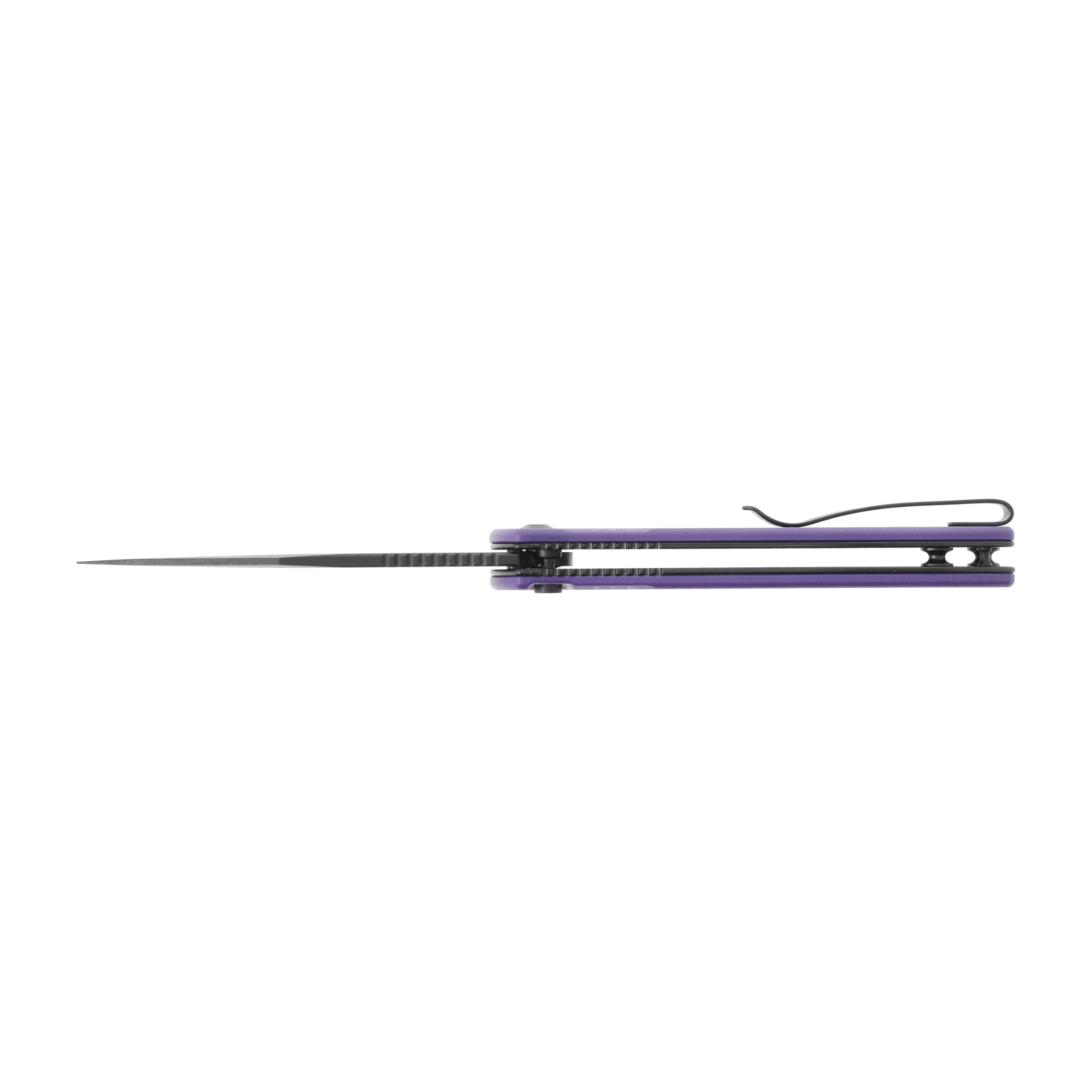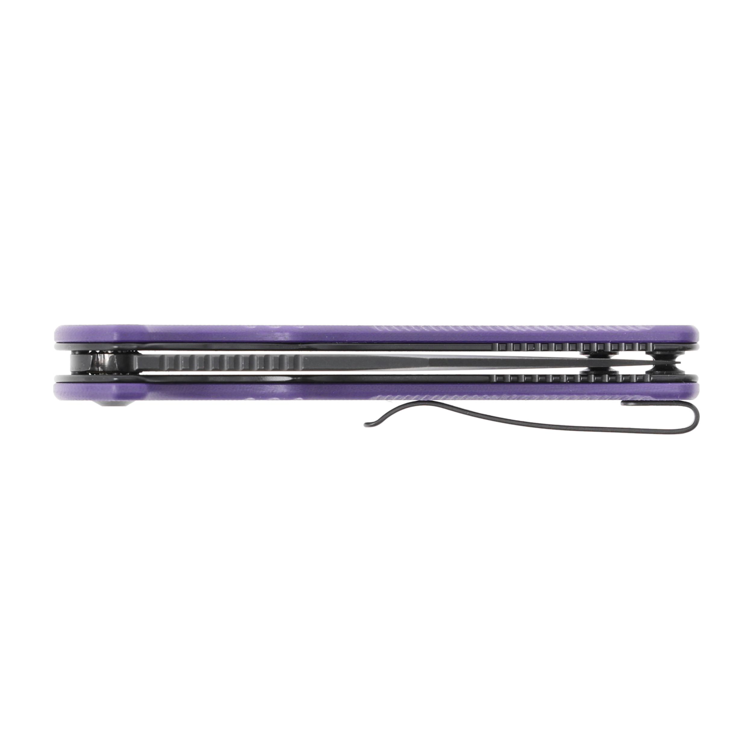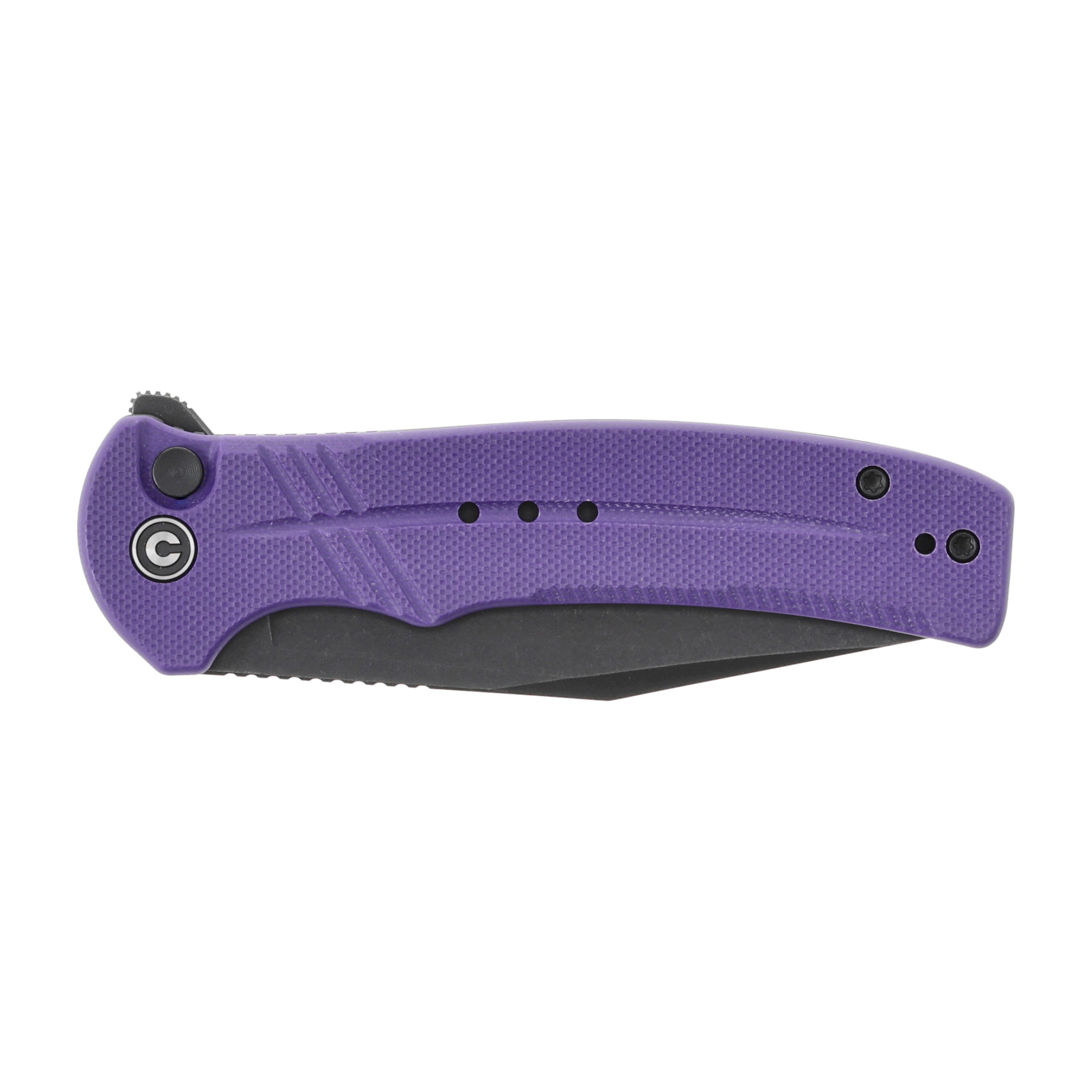 Okładziny rękojeści wykonano z purpurowego G10 – kompozytu z włókna szklanego i syntetycznej żywicy, lekkiego i niepodatnego na uszkodzenia mechaniczne. Wygładzone krawędzie okładzin poprawiają pewność uchwytu i sprawiają, że nóż dobrze leży w dłoni.