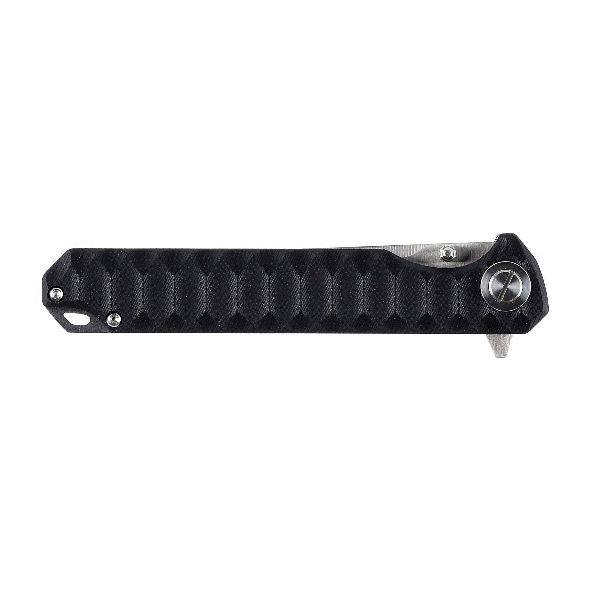 Okładziny mają głębokie łuskowate frezy w stylu rękojeści katany, co sprawia nóż pewnie i wygodnie leży w dłoni. Dzięki zastosowaniu klipsa nóż można dyskretnie przenosić w kieszeni spodni (w pozycji tip-up), na pasie lub oporządzeniu.