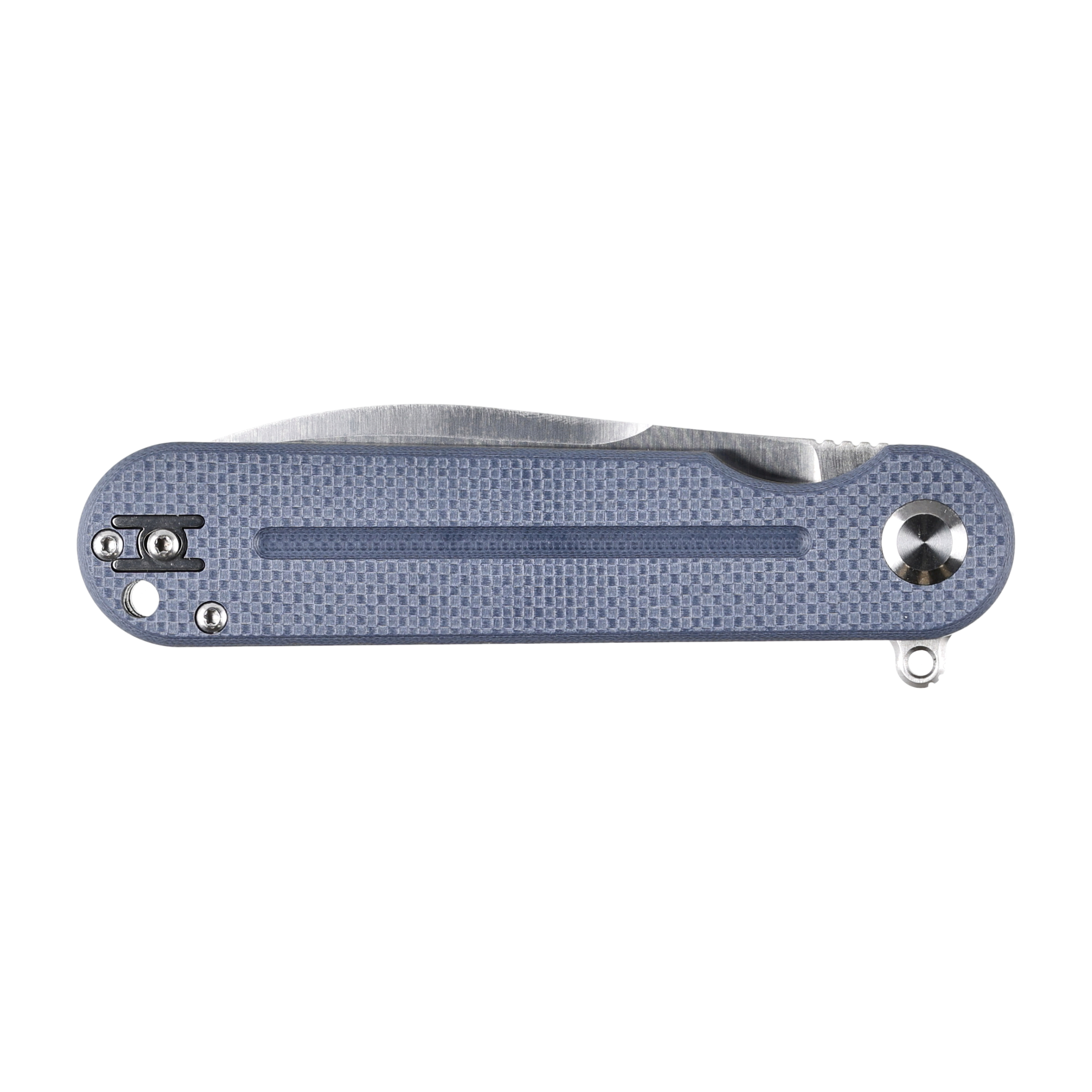 Rękojeść noża tworzą teksturowane okładziny z laminatu G10, materiału odpornego na udar mechaniczny, wysoką temperaturę oraz działanie niektórych aktywnych substancji chemicznych. Nóż waży zaledwie 109 g, dlatego nie obciąża zbytnio naszej kieszeni i nie powoduje dyskomfortu podczas codziennego przenoszenia. Do wygodnego noszenia noża edc zastosowano lekki klips drutowy z możliwością montażu po obu stronach rękojeści.