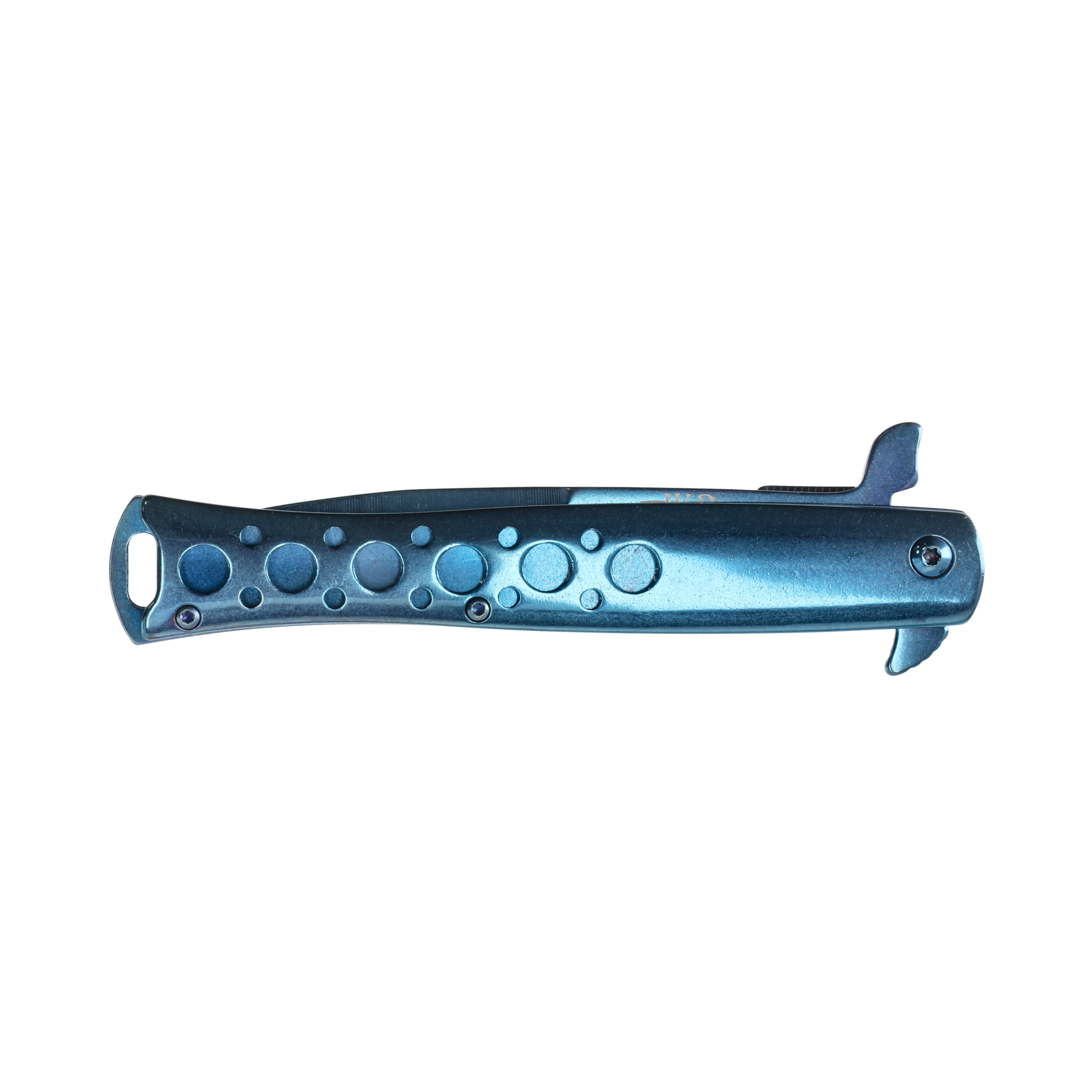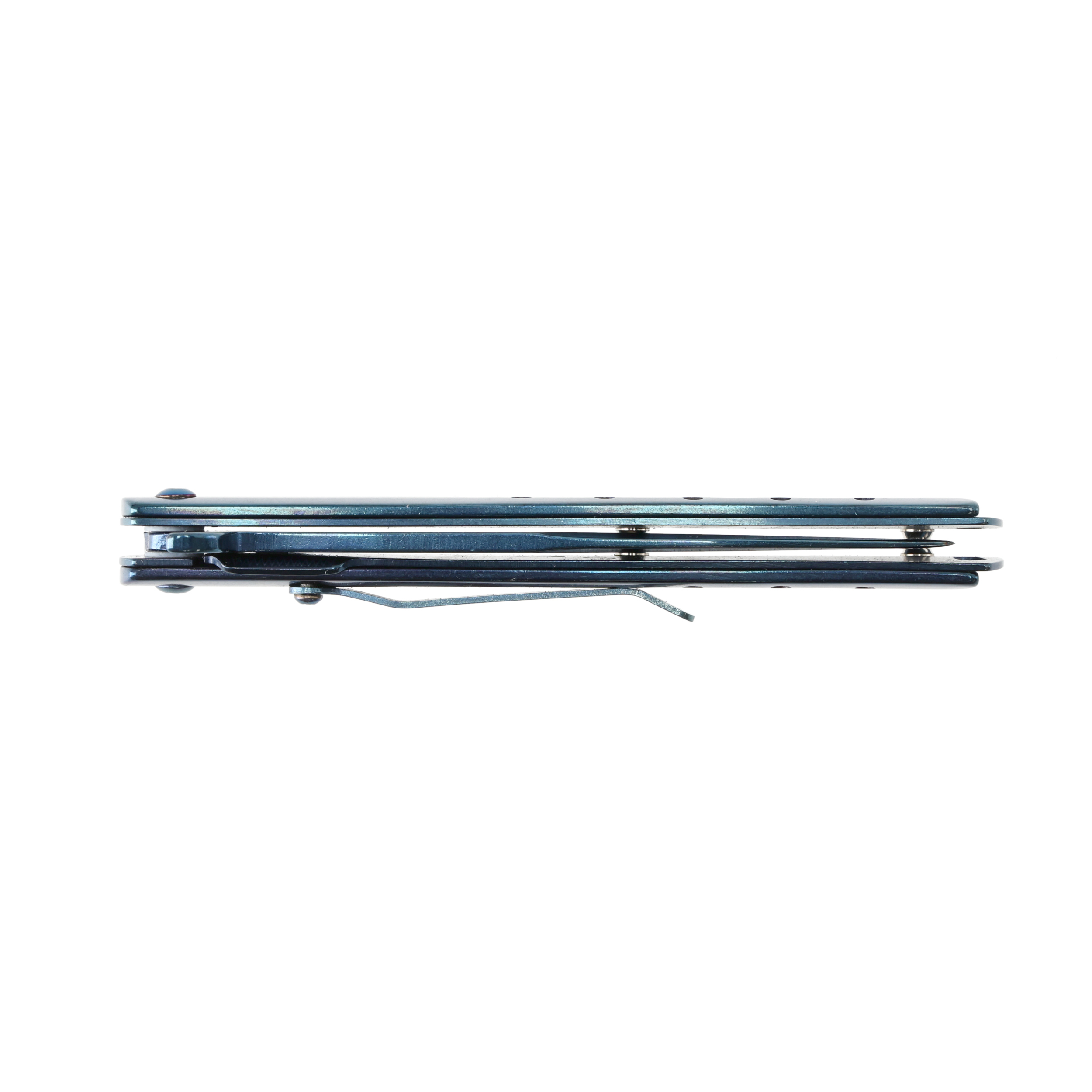 Rękojeść w nożu powstała z wytrzymałego aluminium, w którym wycięto specjalne otwory redukujące wagę noża składanego oraz nadające charakterystyczny wygląd całej konstrukcji.
