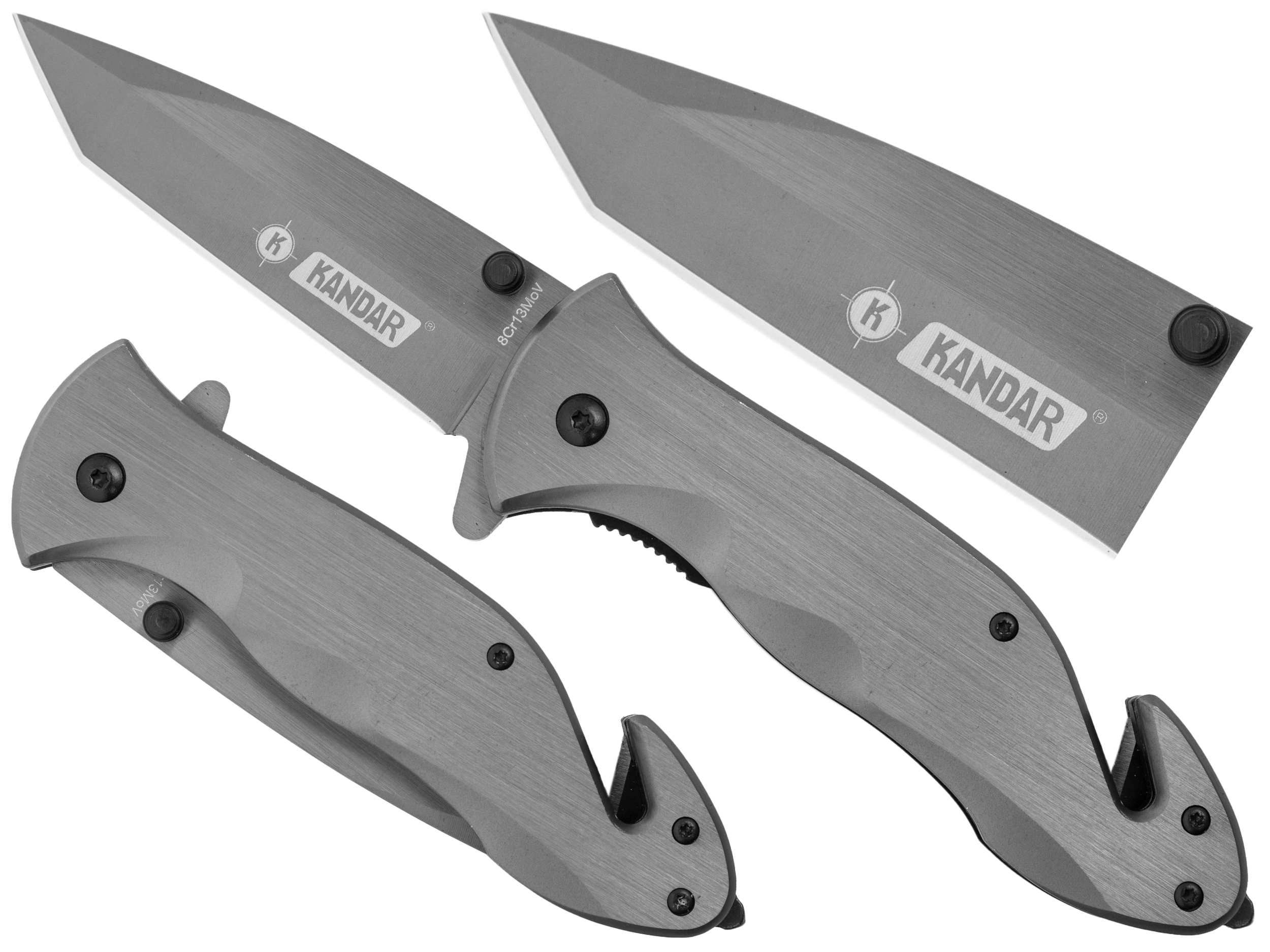 Rękojeść noża, z metalowymi okładzinami i wstawkami zapobiegającymi ślizganiu się, ukształtowano tak, by wygodnie leżała w dłoni. Wyposażono ją w praktyczny klips oraz narzędzia ratownicze: zbijak do szyb i ostrze do przecinania pasów bezpieczeństwa.