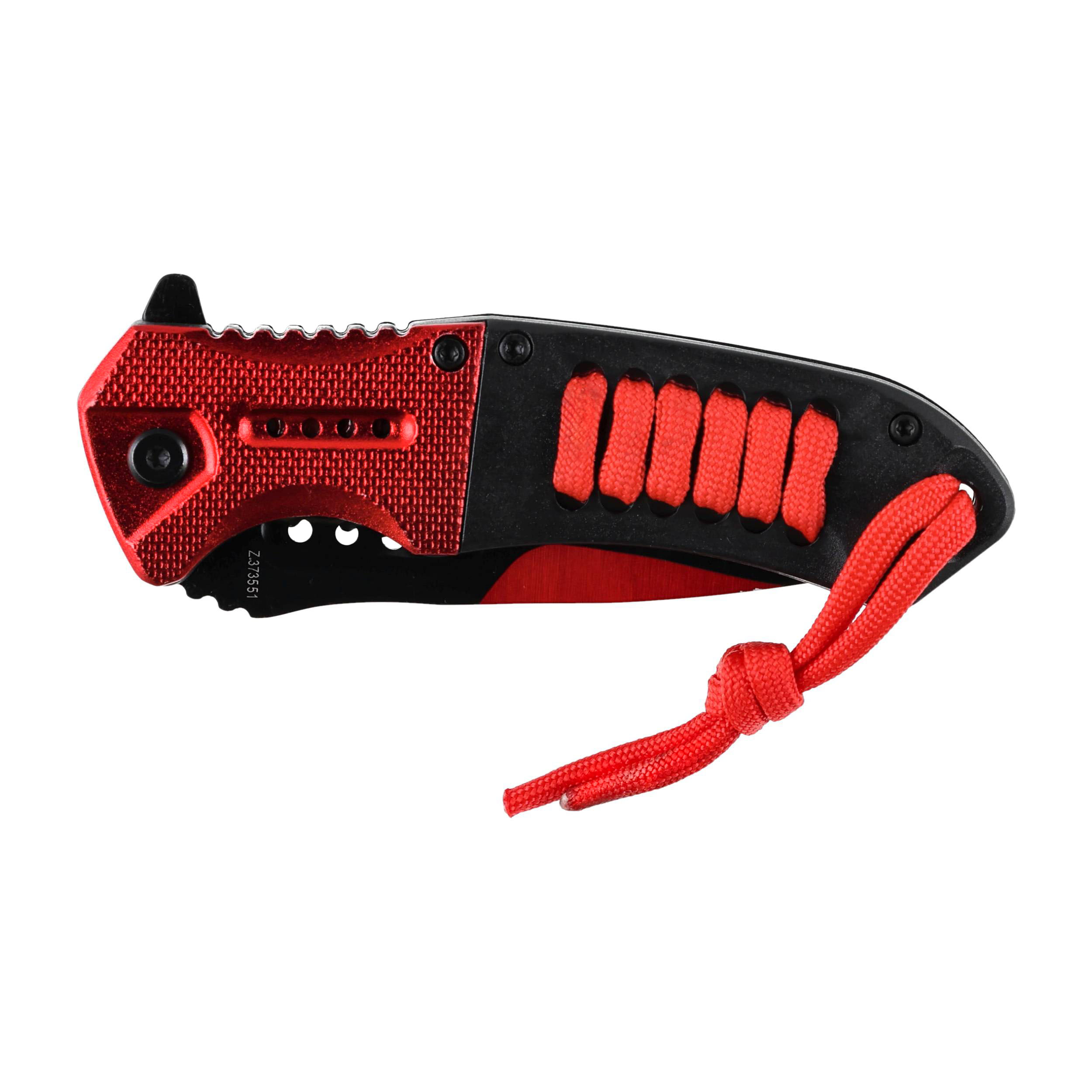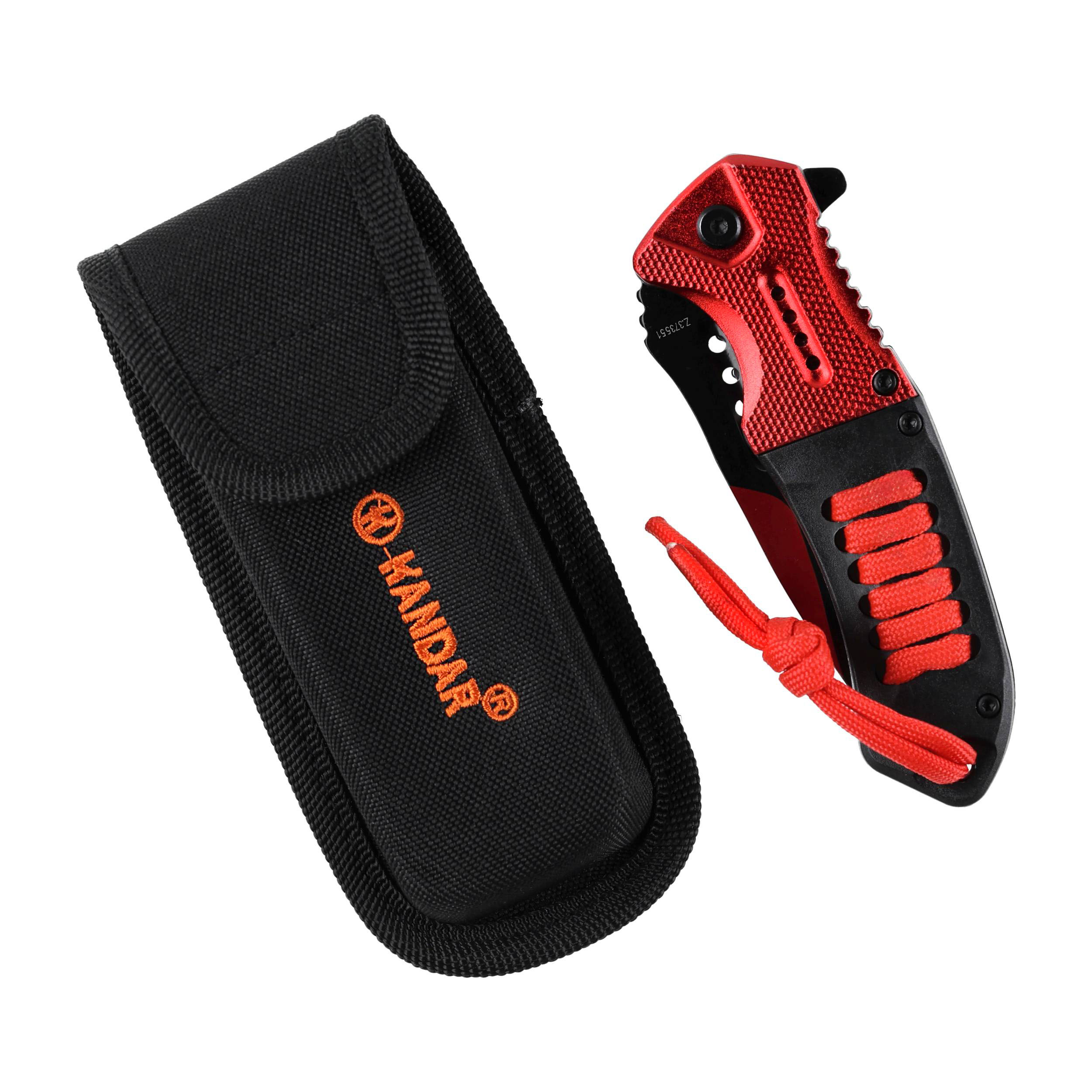 Kandar N375 to składany nóż ratowniczy wyposażony w rozkładaną jedną ręką głownię ze stali 440 oraz ostrze do cięcia pasów samochodowych i lin.