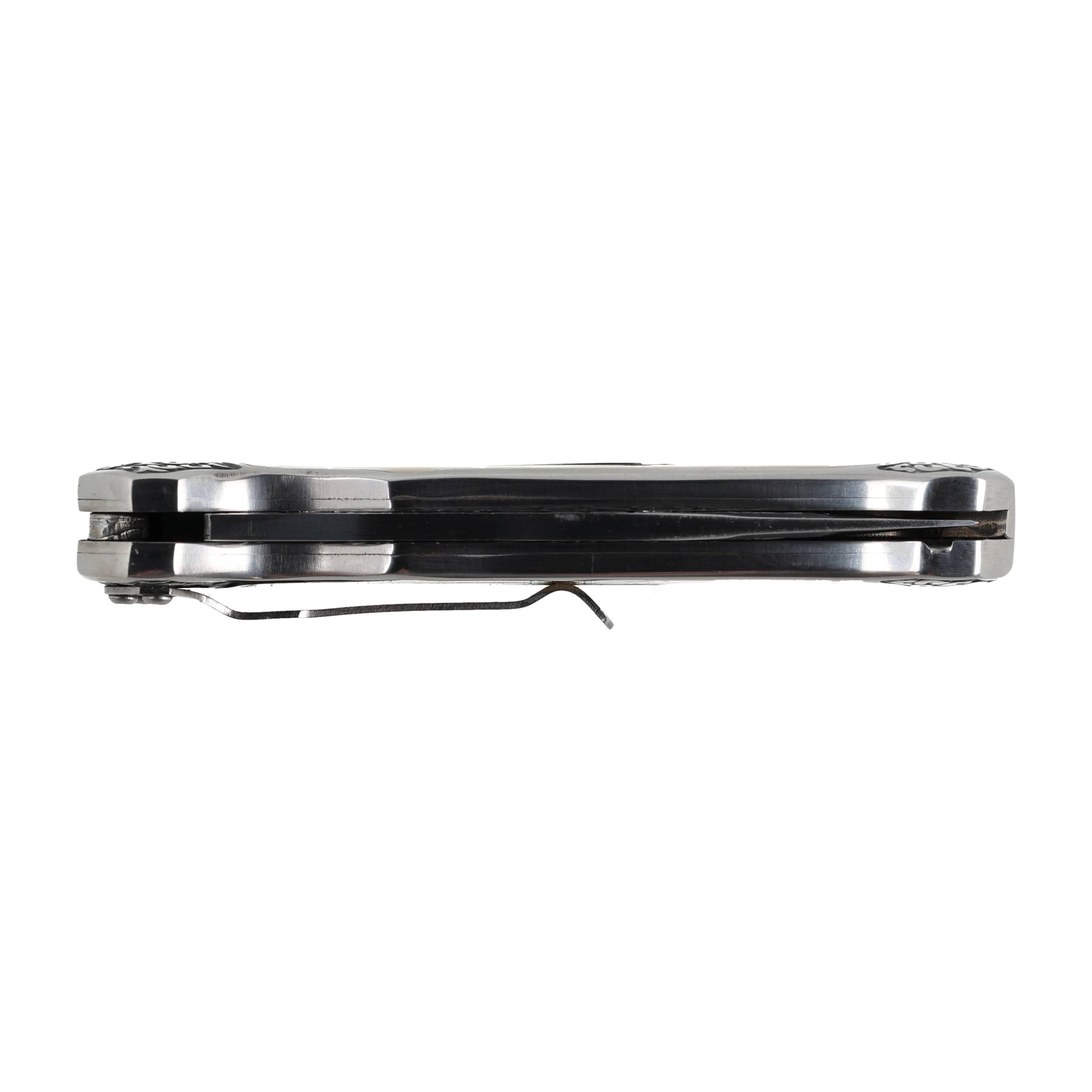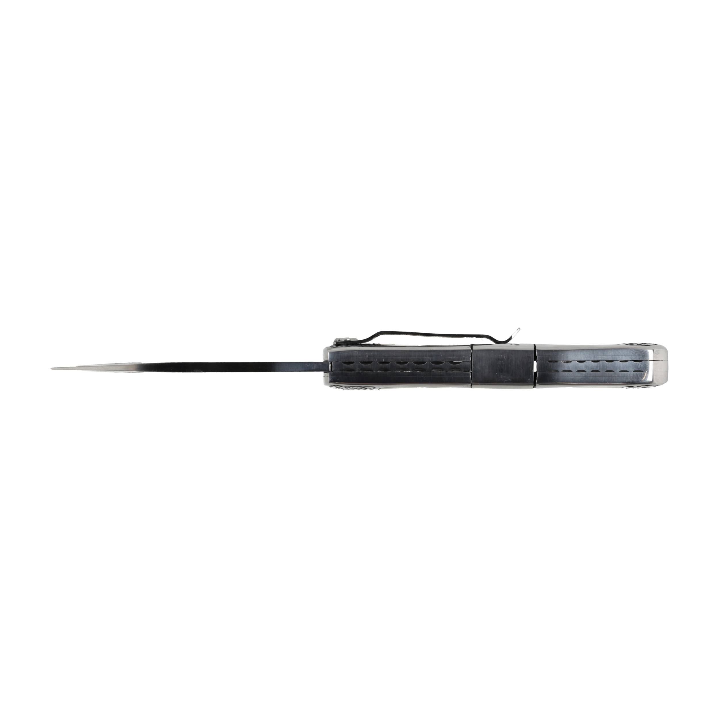 Rękojeść noża, z metalowymi okładzinami i wstawkami zapobiegającymi ślizganiu się, ukształtowano tak, by wygodnie leżała w dłoni. Wyposażono ją w praktyczny klips.
