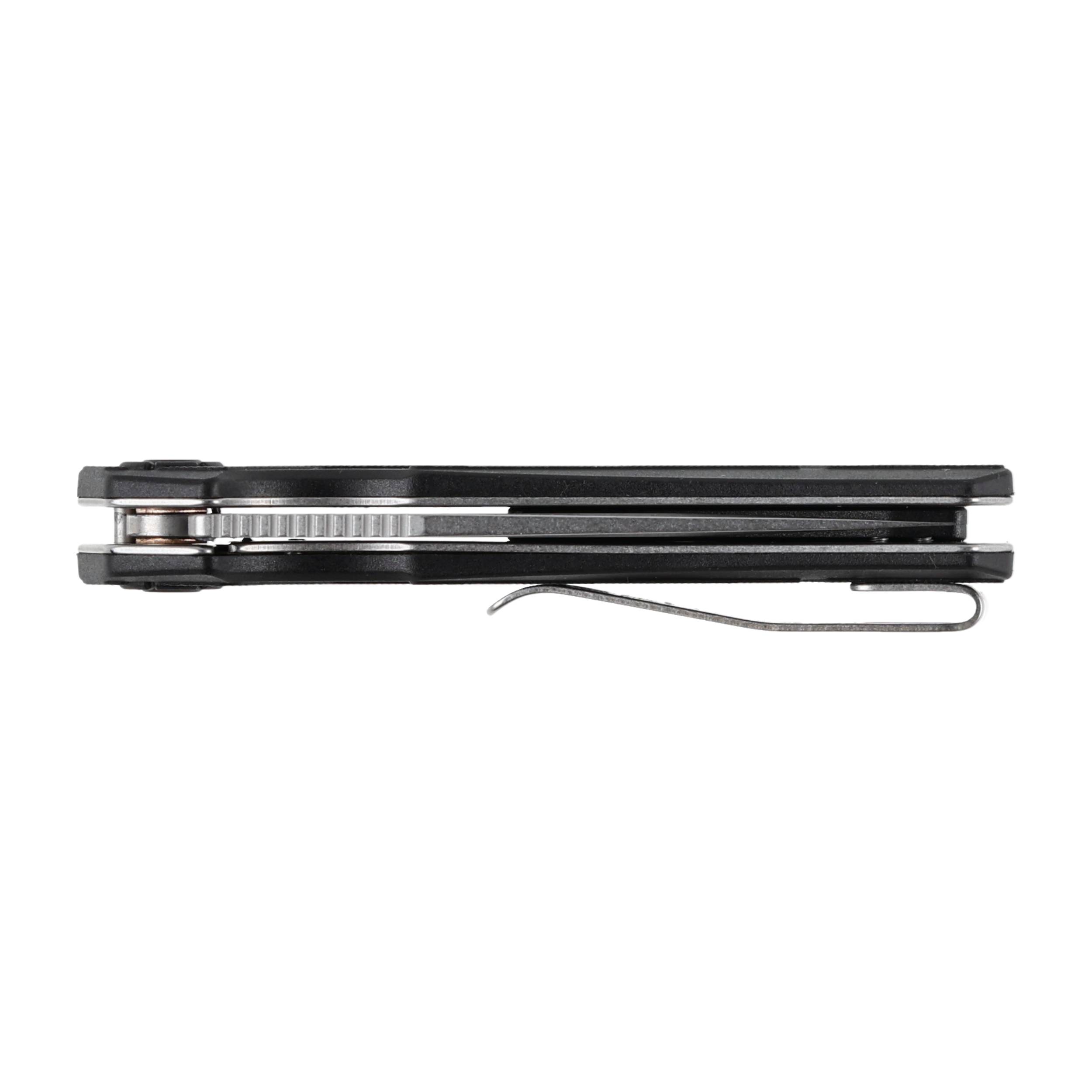 Dyskretne przenoszenie noża w kieszeni ułatwia sprężysty klips z możliwością mocowania w 2 pozycjach. Wystający z rękojeści backspacer ma zaczep do mocowania linki lub oplotu z paracordu, które cieszą się dużą popularnością wśród wielu posiadaczy noży.