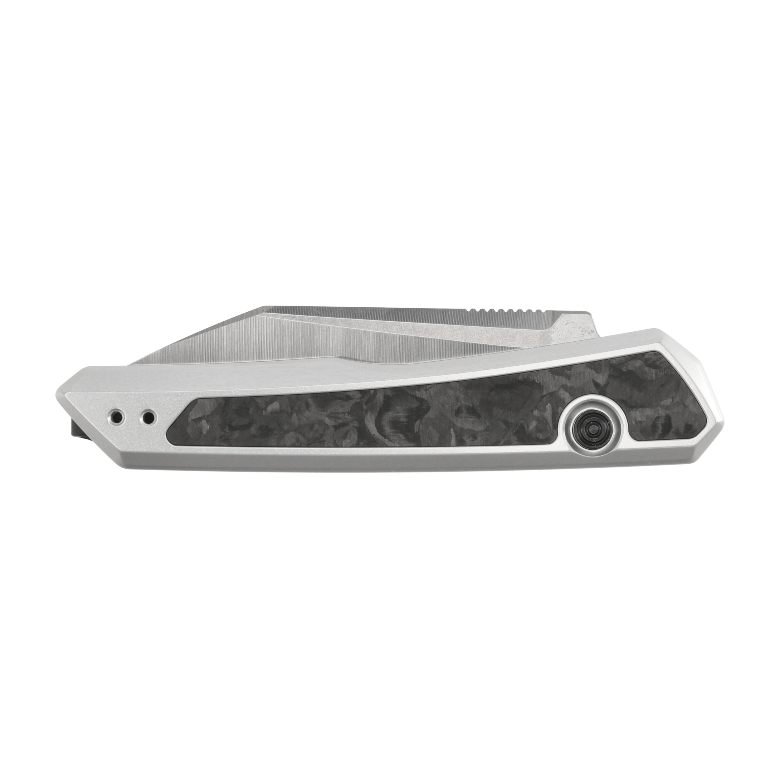 Nóż ma smukłe i proste okładziny z anodowanego aluminium lotniczego 6061-T6, które zapewniają pewny chwyt. Elementem, który nadaje nożowi eleganckiego stylu, są ozdobne wkładki z włókna węglowego. Anodowana powłoka jest odporna na blaknięcie, zarysowania i wytarcie, co gwarantuje atrakcyjny wygląd noża przez długi czas.