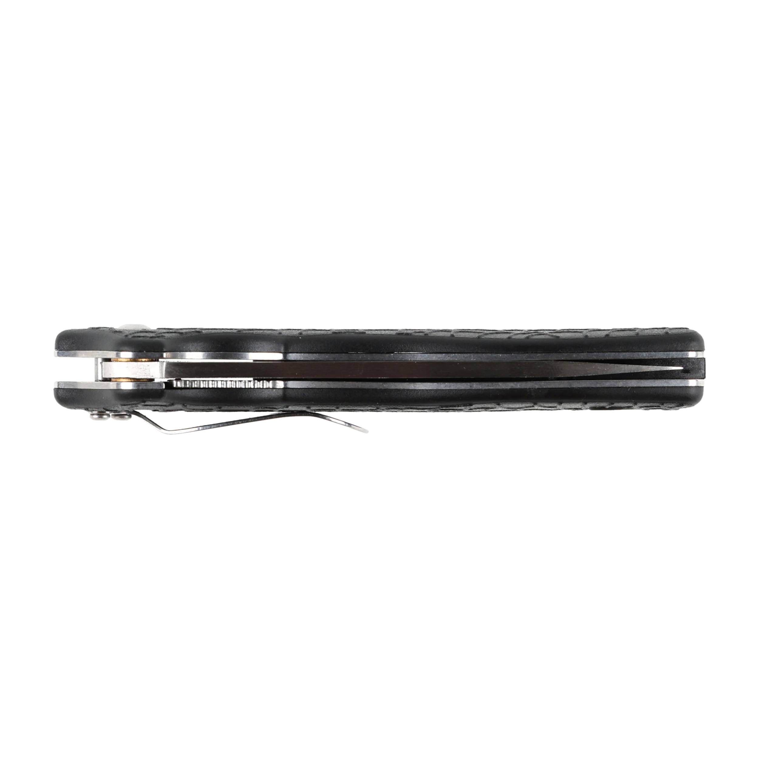 Za sztywność i wytrzymałość noża odpowiedzialne są stalowe wkładki wzmacniające, do których mocowane są okładziny z poliamidu. Dyskretne przenoszenie noża w kieszeni umożliwia szeroki klips, z możliwości mocowania w 2 położeniach (na górze/ na dole).