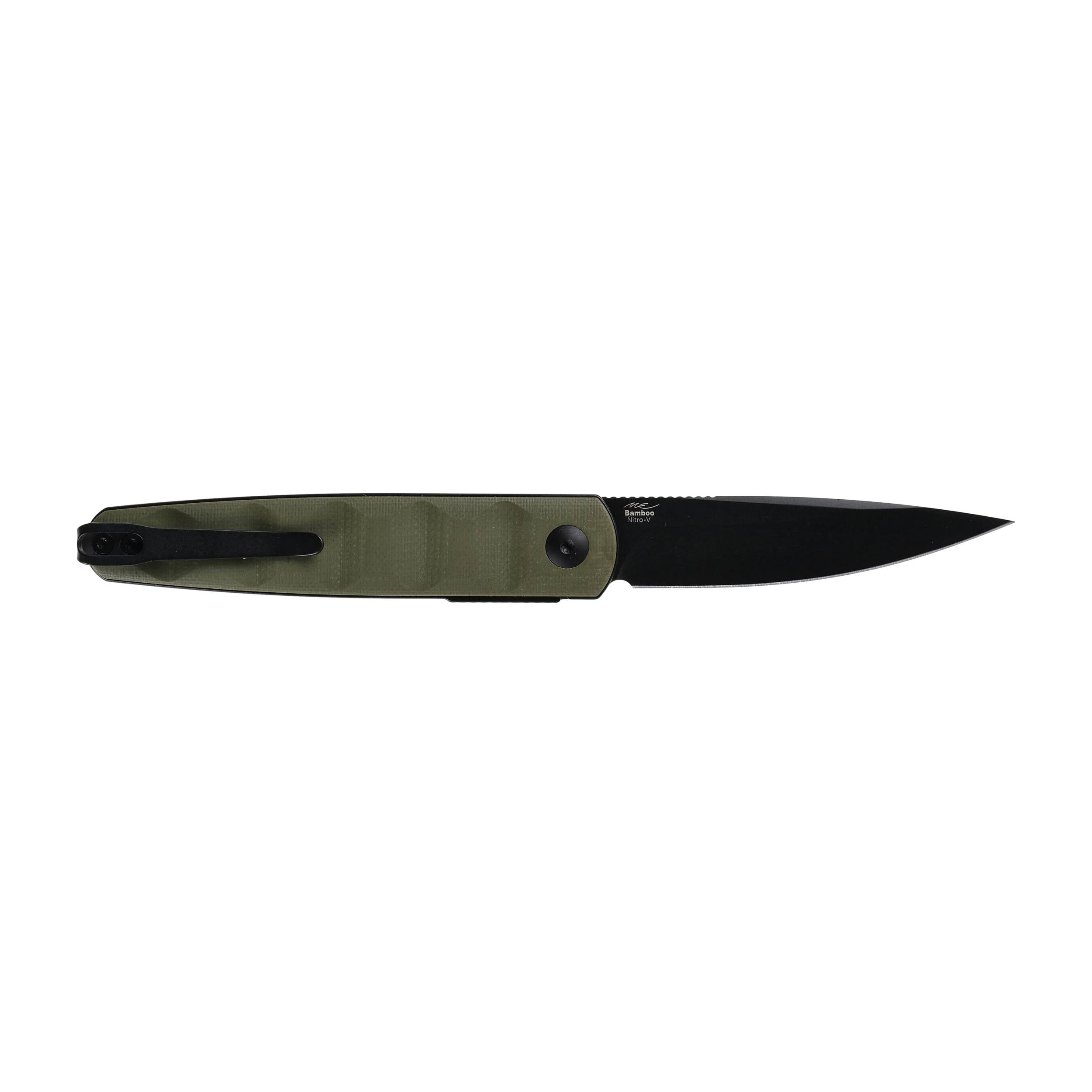Kizer Bamboo V3722A2 o nowoczesny i kompaktowy folder, przeznaczony do codziennego noszenia (EDC) oraz drobnych prac w terenie czy przydomowym warsztacie. Nóż został stworzony przez firmę Kizer we współpracy ze znanym knifemarker'em, Maksimem Epifantsev'em. Model Bamboo wyposażony został w ostrze o profilu Drop-point o długości 76 mm, które wykonano ze stali nitro V. Okładziny rękojeści natomiast to teksturowany kompozyt G-10 mającymi ułatwić poprawę chwytu w mokrych czy śliskich rękach. Za zabezpieczenie ostrza odpowiada blokada Liner-Lock, a waga całego narzędzia nie przekracza 64,6 gramów. Prezentowany model ma chwyt w brązowym kolorze.