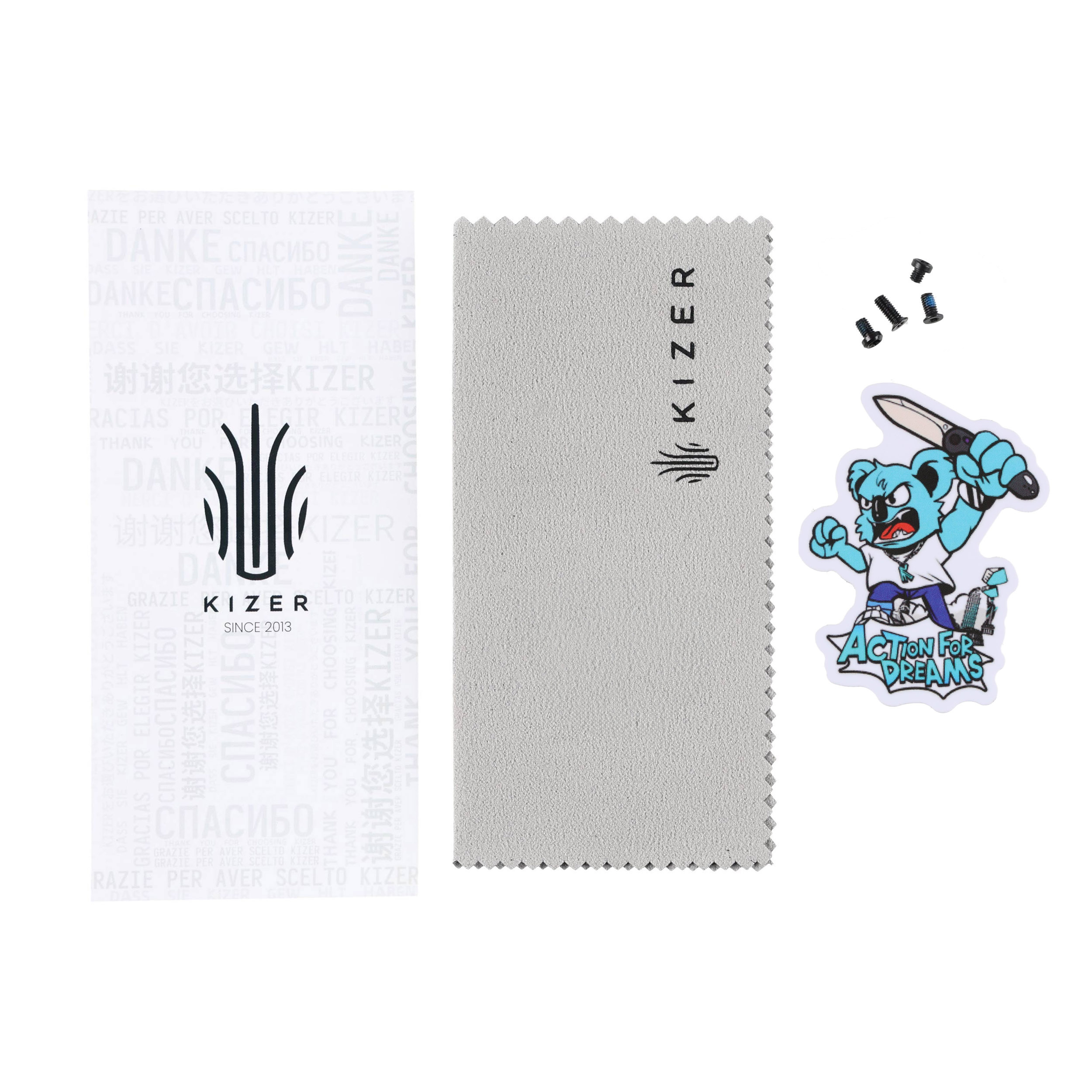 Kizer Bamboo V3722A3 o nowoczesny i kompaktowy folder, przeznaczony do codziennego noszenia (EDC) oraz drobnych prac w terenie czy przydomowym warsztacie. Nóż został stworzony przez firmę Kizer we współpracy ze znanym knifemarker'em, Maksimem Epifantsev'em. Model Bamboo wyposażony został w ostrze o profilu Drop-point o długości 76 mm, które wykonano ze stali nitro V. Okładziny rękojeści natomiast to teksturowany kompozyt G-10 mającymi ułatwić poprawę chwytu w mokrych czy śliskich rękach. Za zabezpieczenie ostrza odpowiada blokada Liner-Lock, a waga całego narzędzia nie przekracza 64,6 gramów. Prezentowany model ma chwyt w kolorze żółtym.
