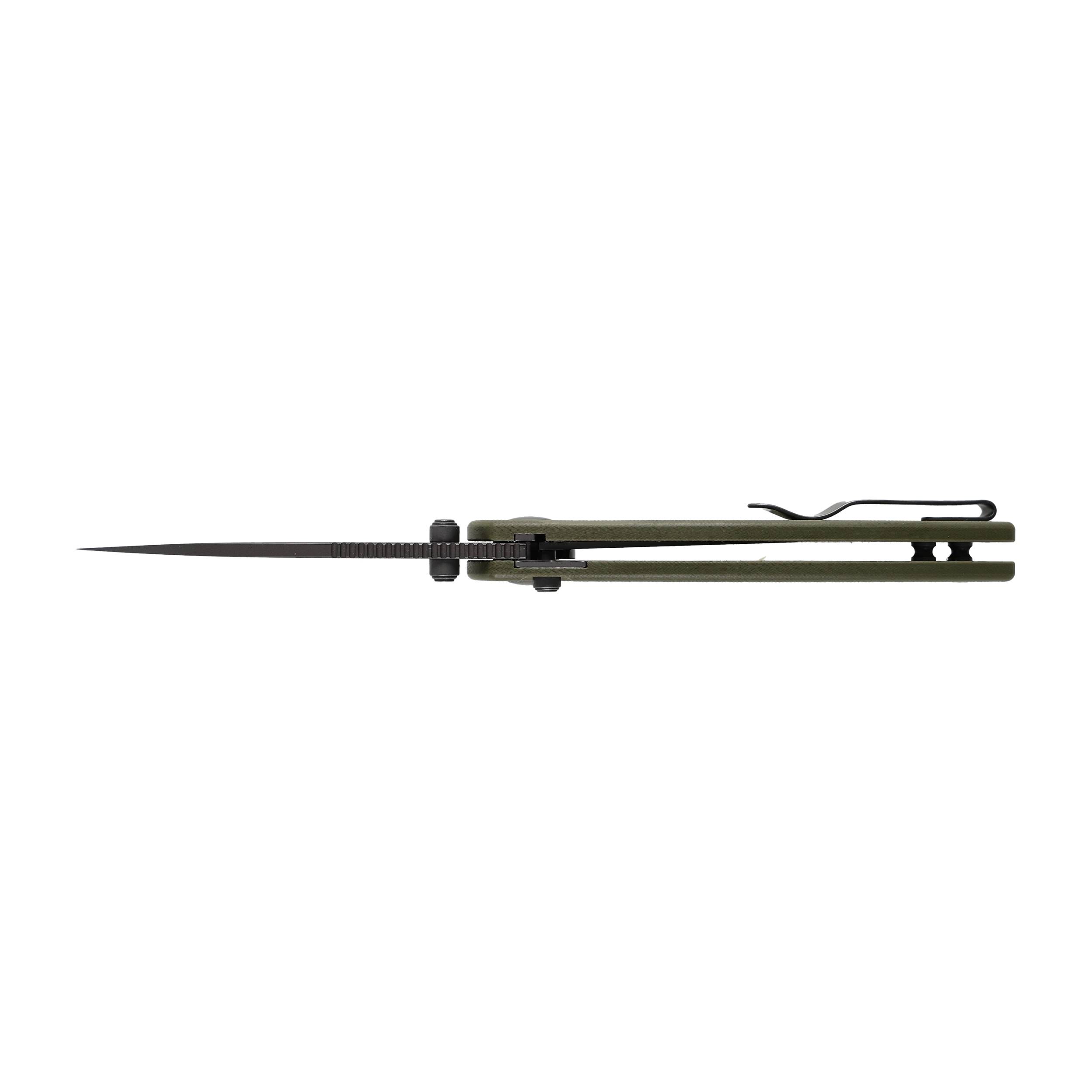 Klingę o użytkowym profilu Drop Point wykończono metodą Grey Stonewash. Matowe ostrze jest łatwiejsze do czyszczenia oraz nie odbija światła. Głownia o zakrzywionym, łukowatym kształcie stanowi doskonały wybór dla osób szukających noża o bardzo dobrych właściwościach tnących. Dzięki blokadzie Button Lock narzędzie jest bezpieczne, zwolnienie blokady następuje po naciśnięcie guzik umieszczonego na jednej z okładzin. Pod przyciskiem blokady jest sprężyna, która zapewnia opór wystarczający, by nóż przypadkowo się nie otworzył. Nóż można otworzyć na jeden z trzech sposobów — za pomocą Flippera, kołka pod kciuk lub przycisku, co szczególnie przypadnie do gustu wszystkim miłośnikom ostrych narzędzi.