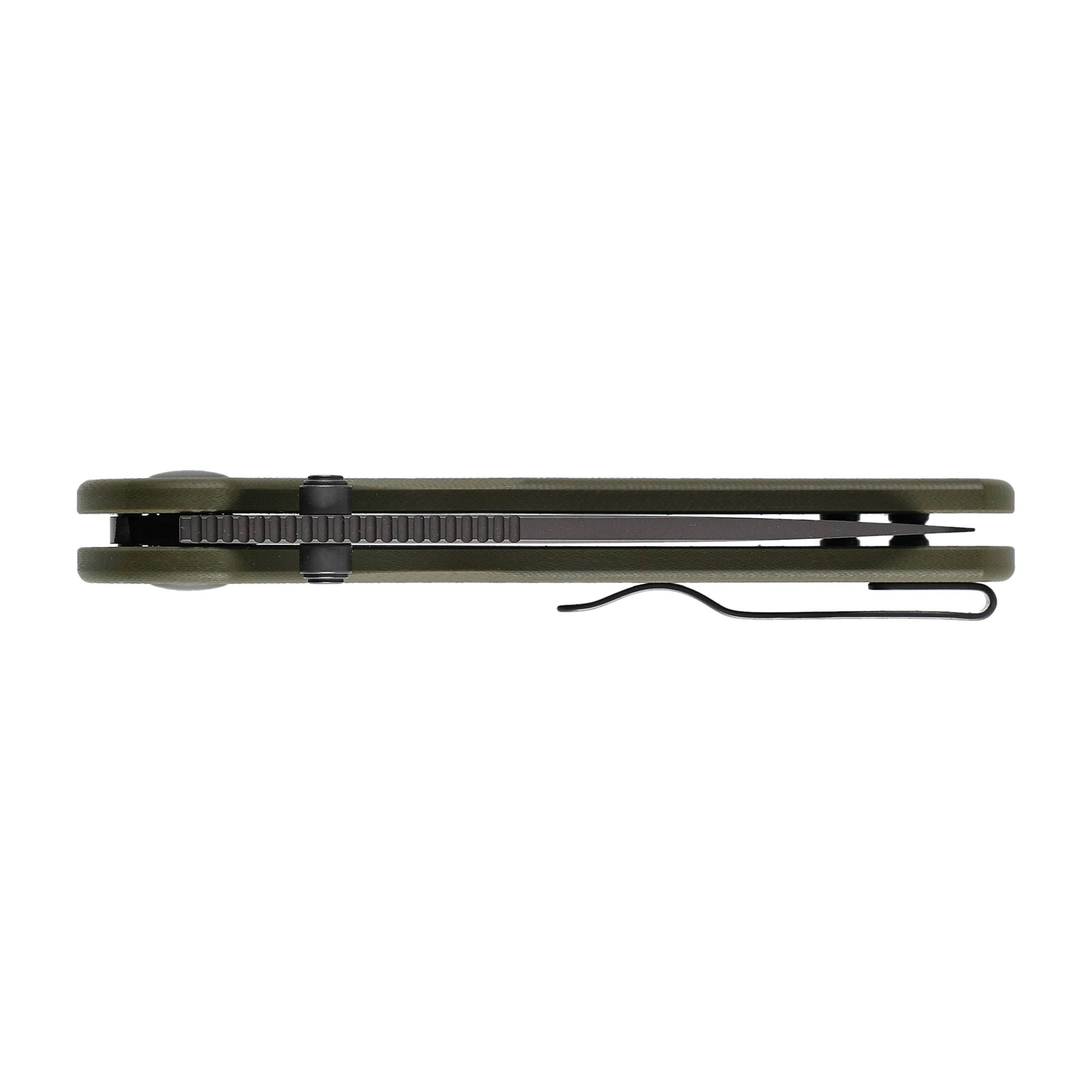 Kizer Nice Mini Grouper ma okładziny z teksturowanego G10, czyli kompozytu z włókna szklanego i syntetycznej żywicy. Okładziny mają gładkie krawędzie, zapewniając komfortowy chwyt nawet podczas dłuższej pracy. Folder wyposażono w dwustronny klips Deep Carry umożliwiający dyskretne przenoszenie w kieszeni spodni.