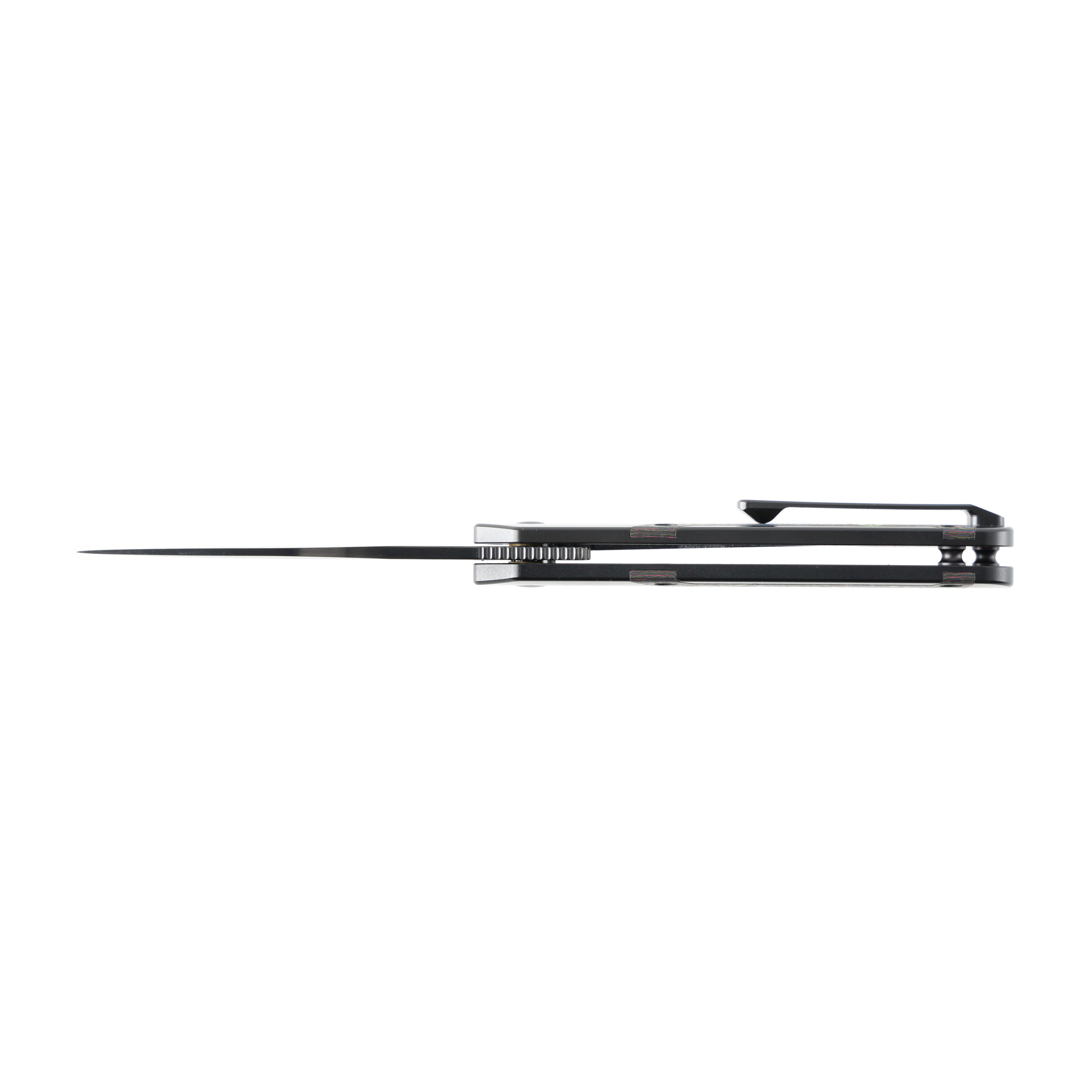 Głownia noża wykonana jest z wysokogatunkowej stali nierdzewnej Böhler M390, znanej ze swojego wyjątkowego zachowania krawędzi, odporności na korozję i ogólnej wytrzymałości. Głownię pokryto czarną powłoką DLC, co nadaje folderowi elegancki wygląd oraz dodatkowo chroni klingę. Mechanizm otwierania jest płynny i intuicyjny, a blokada typu frame lock zabezpiecza ostrze przed przypadkowym zamknięciem w trakcie pracy.