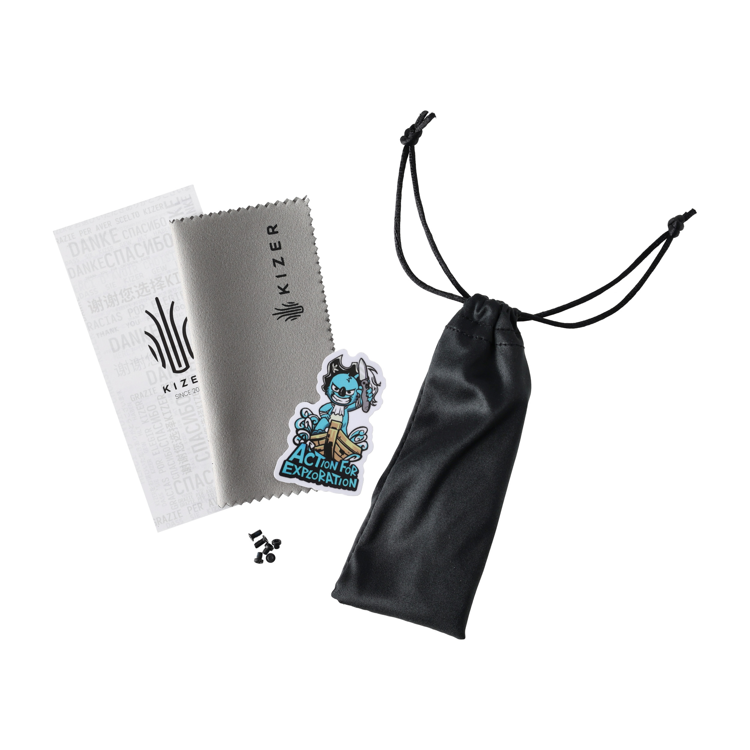 - Tytanowy klips do noszenia – pozwala na bezpieczne i dyskretne mocowanie noża do paska lub kieszeni.