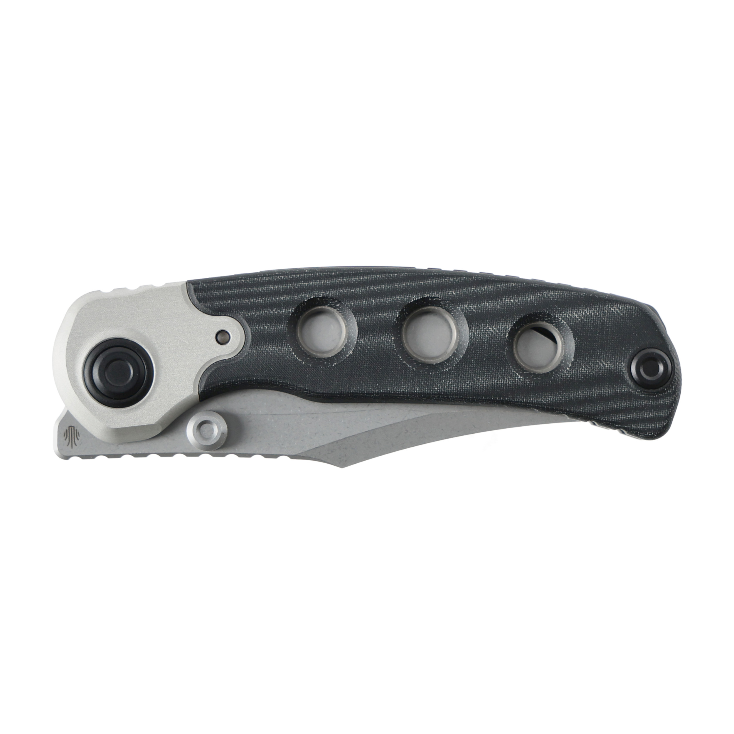 Aluminiowy bolster w połączeniu z okładzinami z Micarty tworzy rękojeść, która jest lekka, a zarazem niezawodnie pewna w dłoni. Naturalna faktura Micarty poprawia chwyt, zwłaszcza w warunkach wilgotnych, a wyprofilowanie zapewnia komfort nawet przy długotrwałym użytkowaniu. Dzięki wyważeniu na osi głównej nóż doskonale układa się w dłoni niezależnie od stylu chwytu.