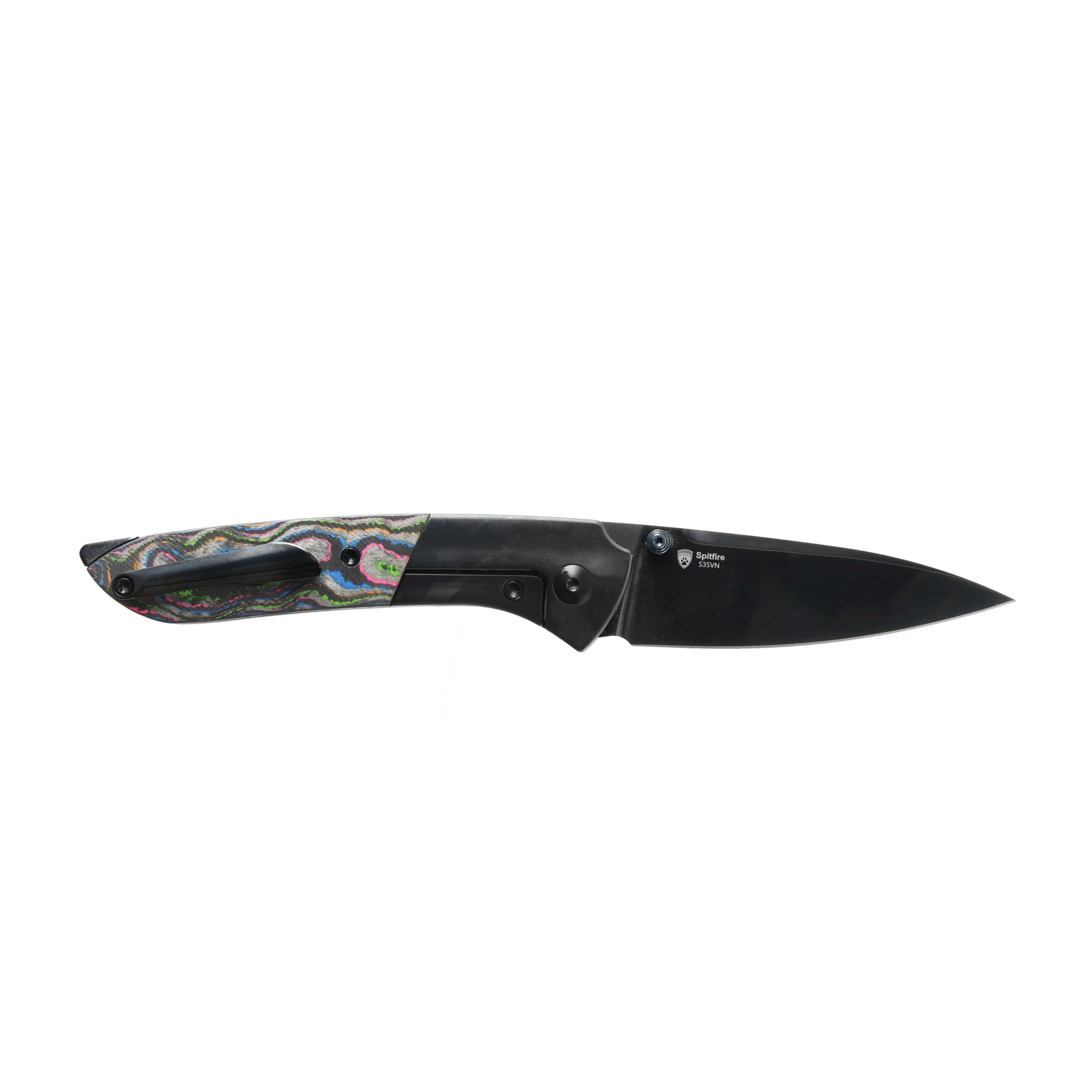 Tytanowy klips umożliwia dyskretne przenoszenie noża w kieszeni (tip-up, prawa strona), dzięki czemu Spitfire zawsze pozostaje w zasięgu ręki.