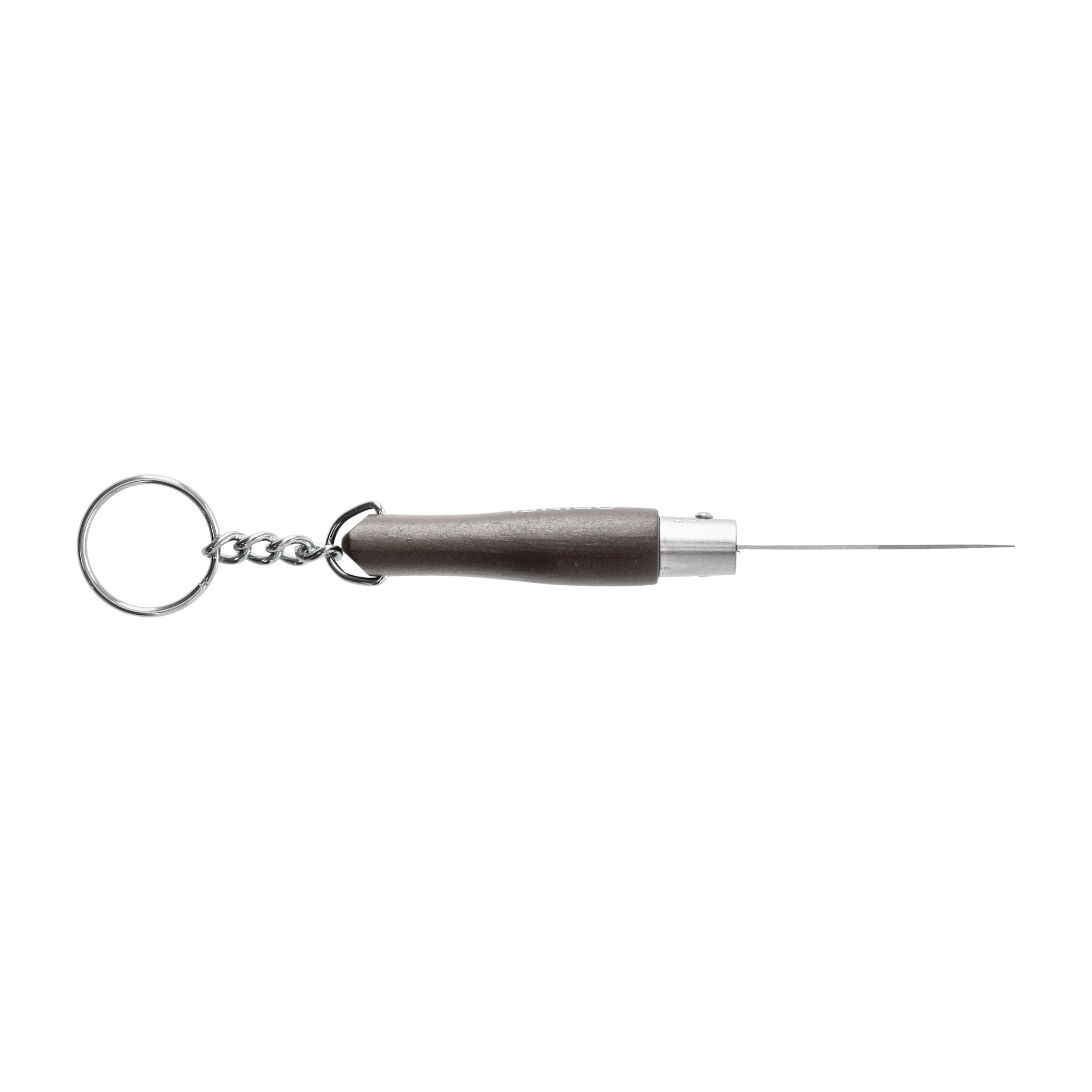 Do wykonania rękojeści zastosowano drewno francuskiego grabu, z powłoką lakierniczą chroniącą przed zabrudzeniem i działaniem wilgoci. Rękojeść ma tradycyjny owalny profil, który rozszerza się na końcu, dzięki czemu nóż wygodnie i pewnie leży w dłoni. Nóż można zamocować do kluczy za pomocą stalowego kółka.