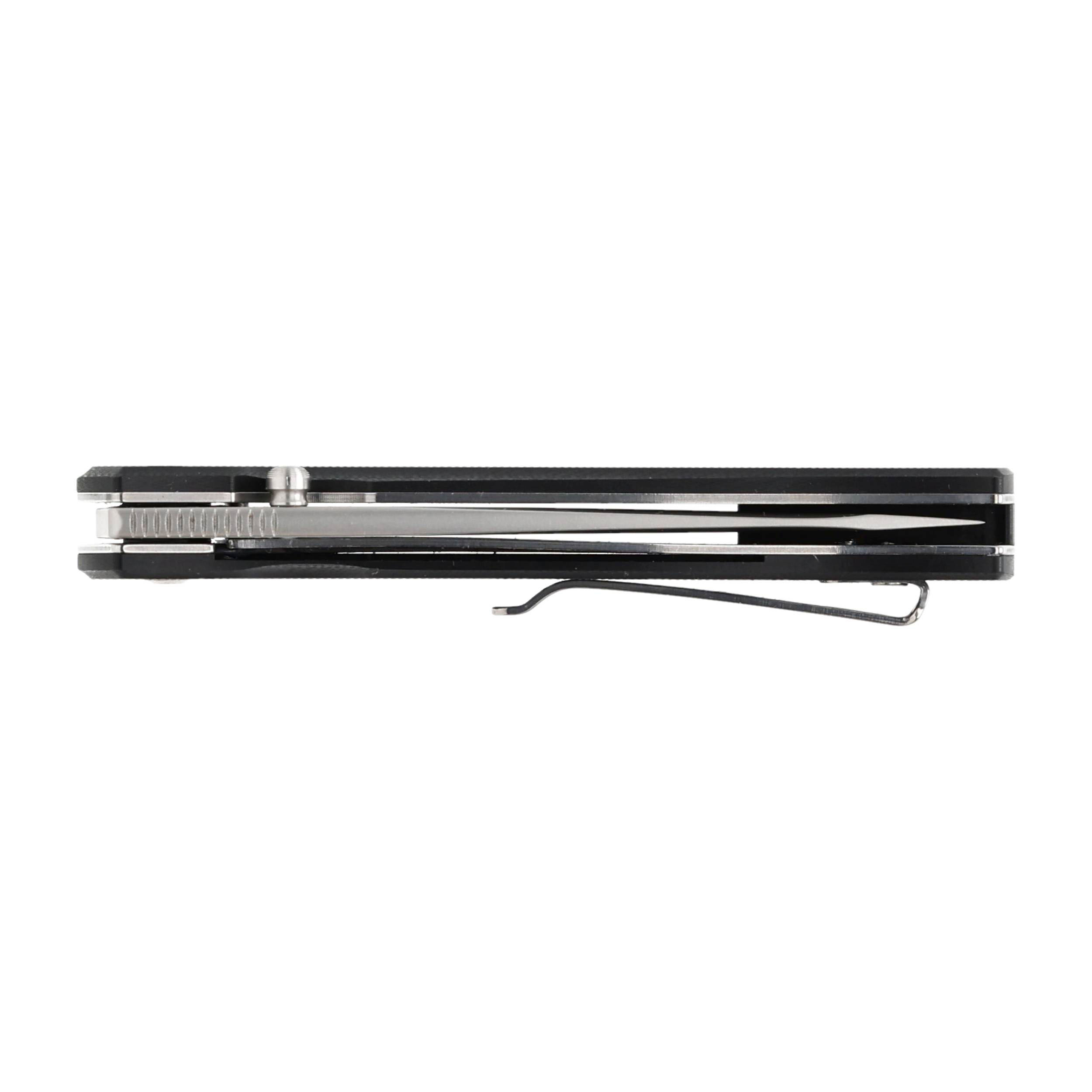 Dyskretne przenoszenie noża w kieszeni umożliwia stalowy klips o satynowanym wykończeniu.