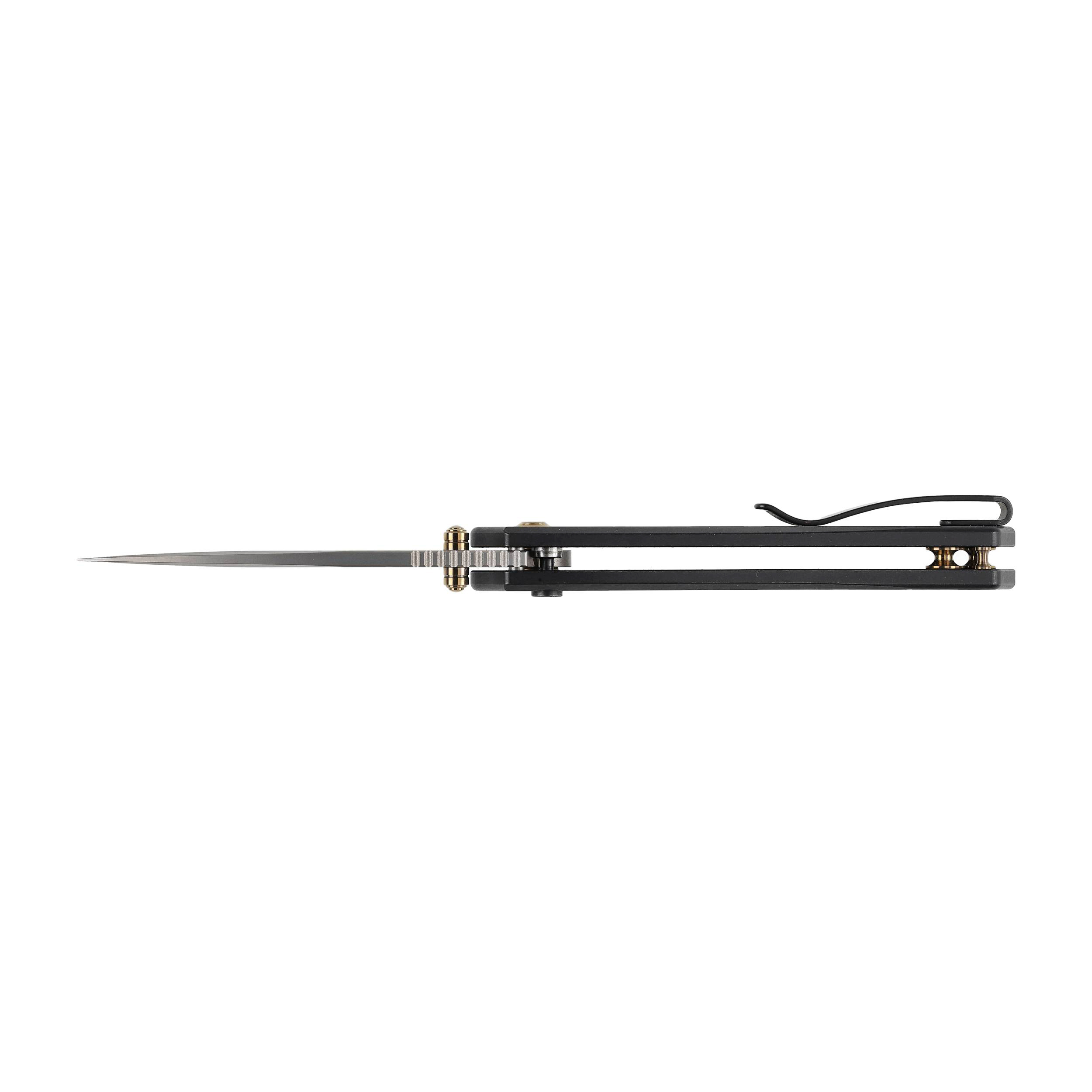 Rękojeść wykonano z tytanu, metalu lekkiego i niepodatnego na uszkodzenia mechaniczne. Wygładzone krawędzie okładzin poprawiają pewność uchwytu i sprawiają, że narzędzie dobrze leży w dłoni. Producent zadbał również o wygodny transport noża, wyposażając go w obustronny, tytanowy klips.