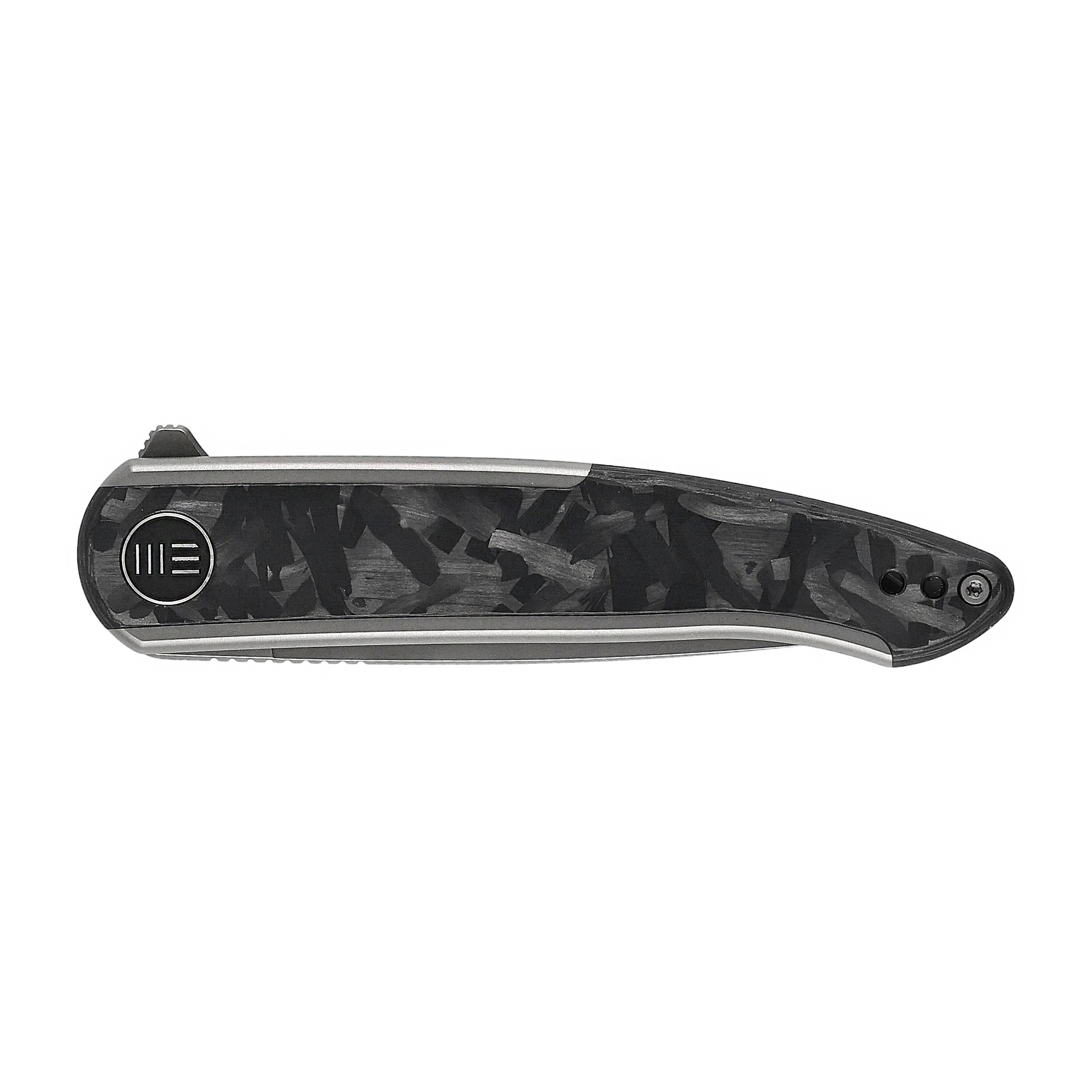 Głownię WE Smooth Sentinel wykuto ze stali CPM-20CV, zapewniającej znakomitą trwałość i odporność na korozję. Wszechstronną klingę typu Drop Point, zahartowaną do 59-61 HRC, otwieraną za pomocą flippera, wykończono metodą Stonewash. Rękojeść wykonano z połączenia tytanu i włókna węglowego. Całość blokuje sprawdzony mechanizm Frame Lock.