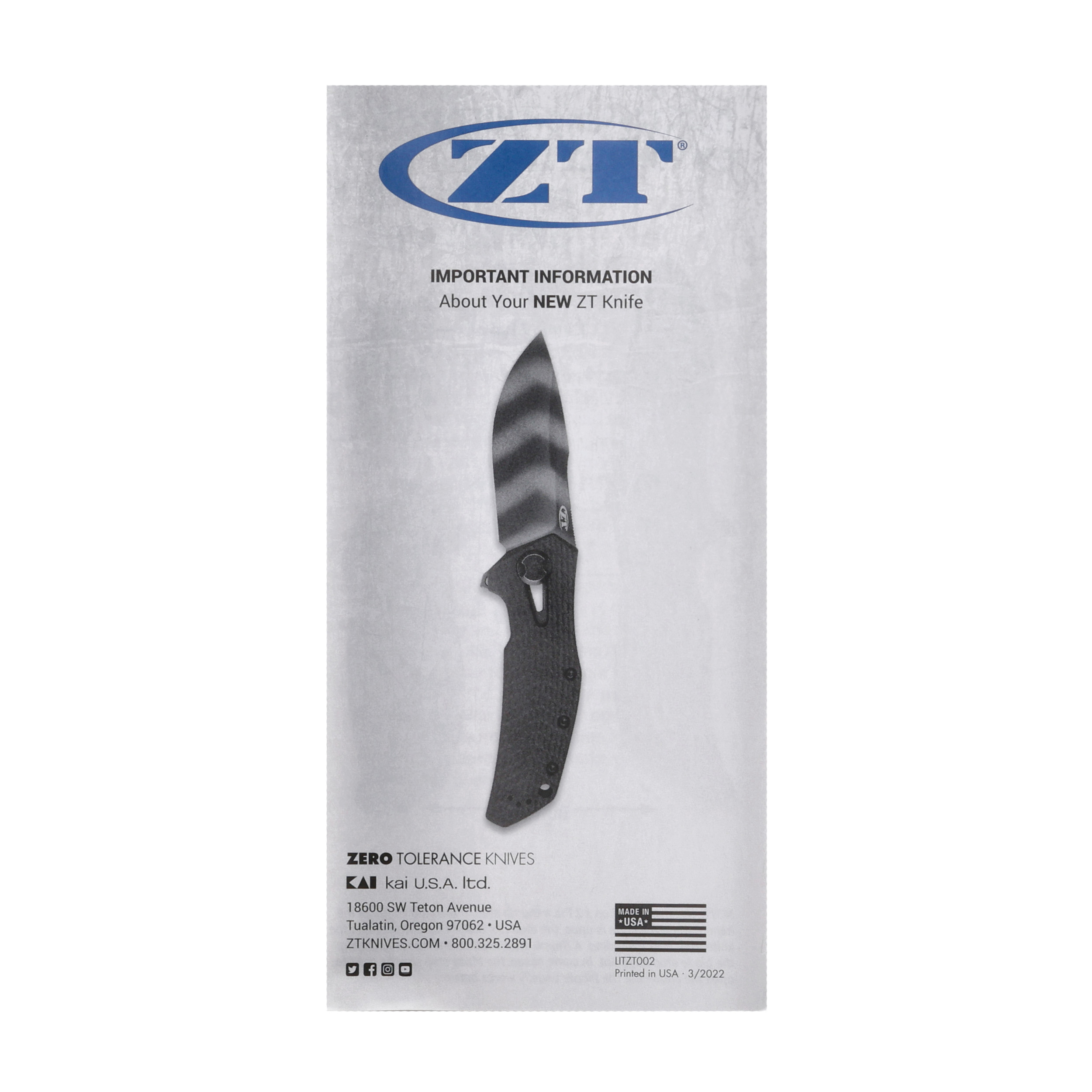 Zero Tolerance ZT 0770CF jest mniejszą wersją kultowego noza ZT 0777, w której zastosowano głownię ze stali proszkowej CPM-S35VN, mechanizm wspomagający rozkładnie ostrza SpeedSafe oraz ultralekkie okładziny z włókna węglowego.