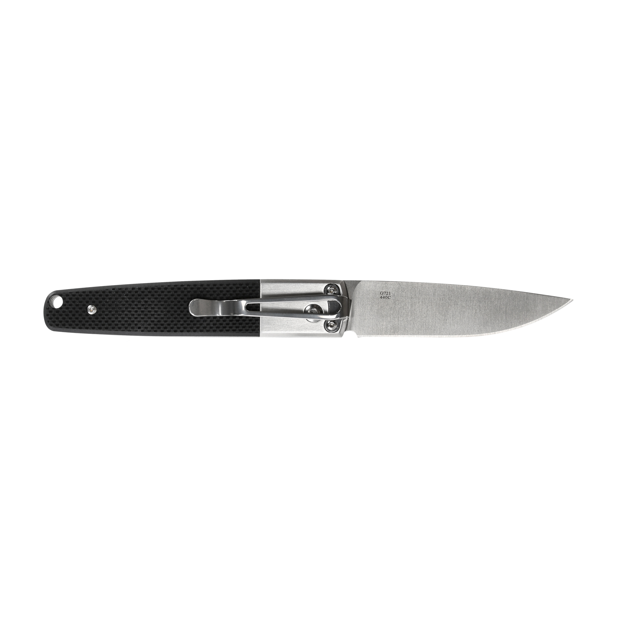 Ergonomiczna rękojeść wykonana ze stali obłozona została z jednej strony okładziną wykonaną z kompozytu G10 w kolorze czarnym. Antypoślizgowa faktura rękojeści zapewnia pewny i bezpieczny chwyt w każdych warunkach. Umieszczony na rekojeści klips pozwala na dyskretne przenoszenie noża.