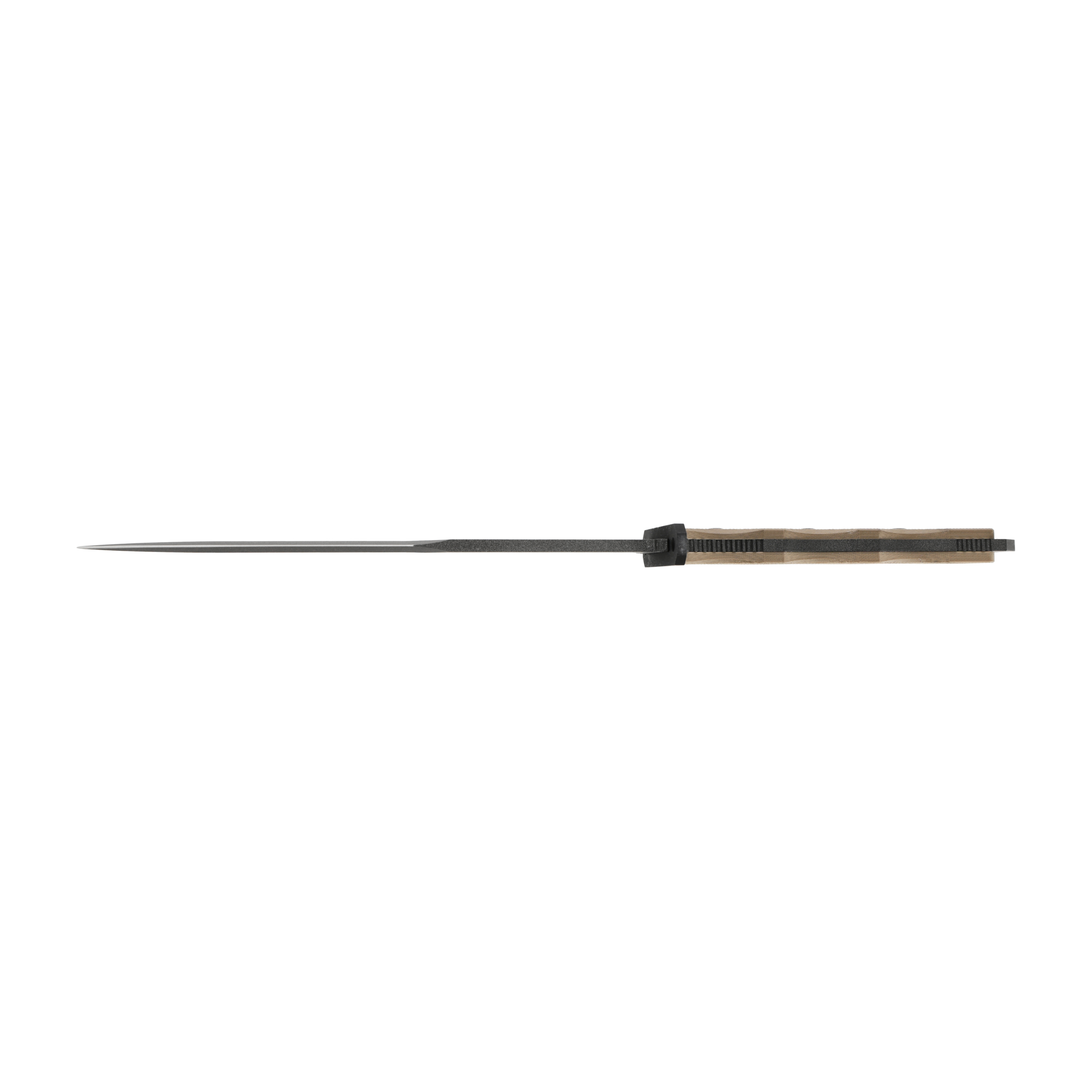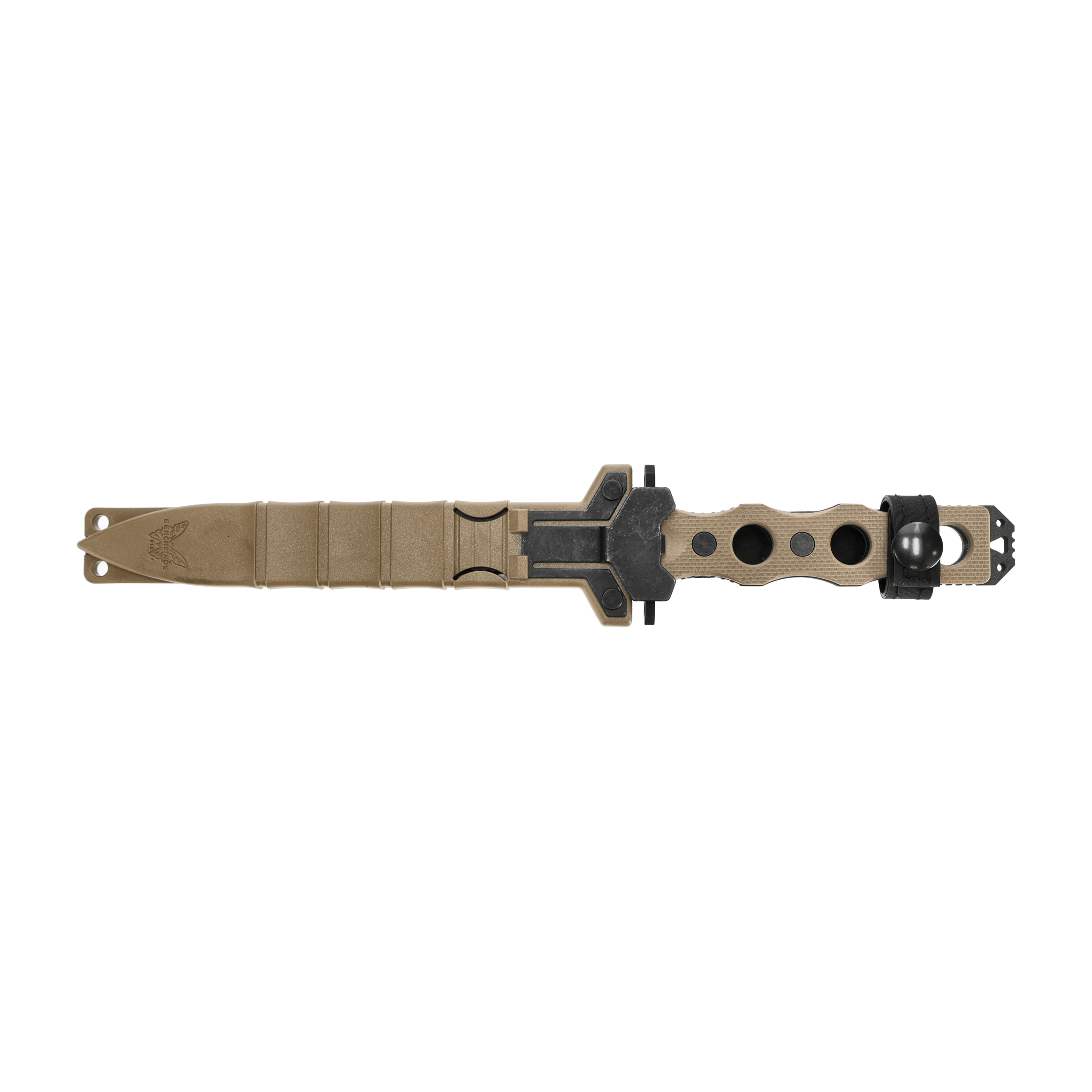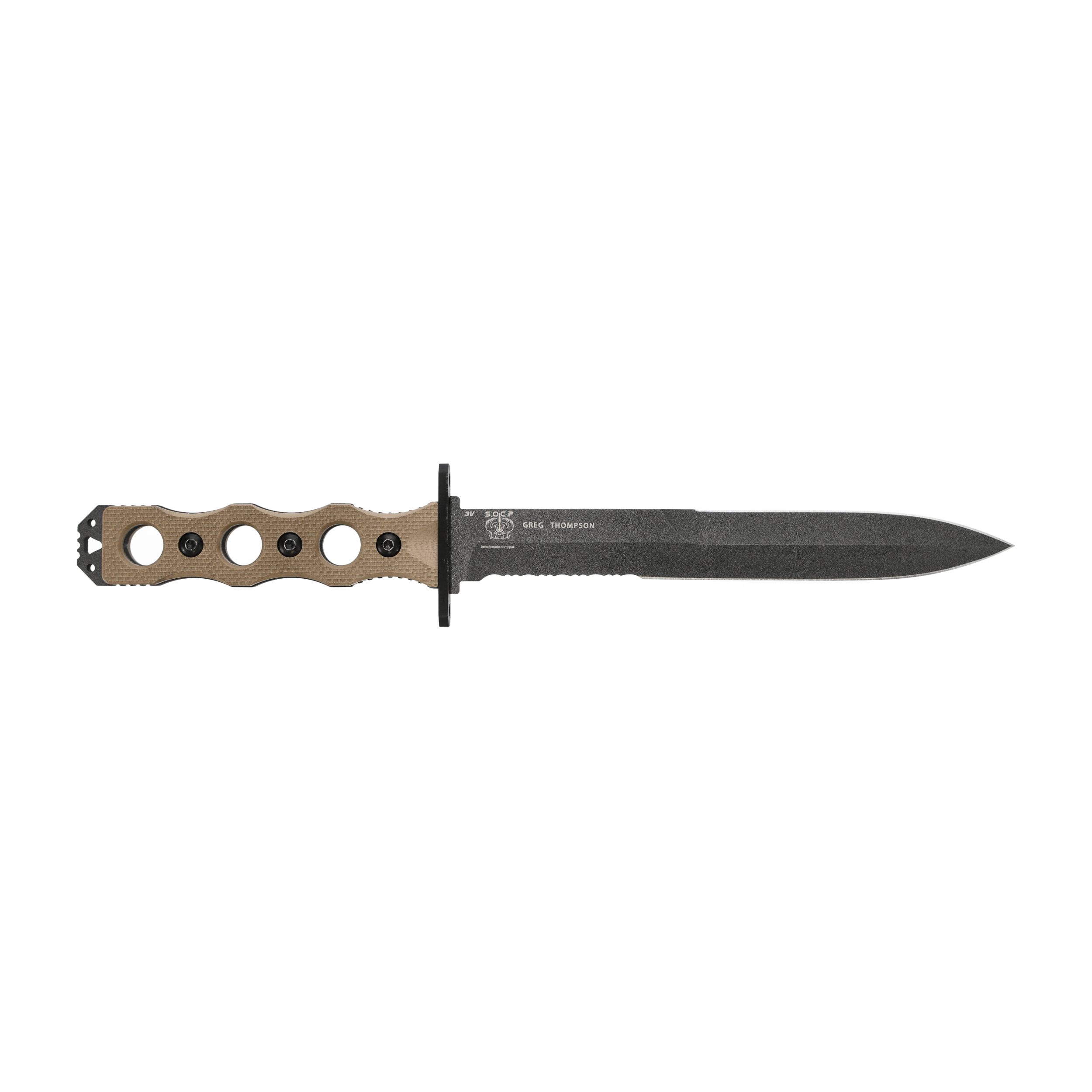 Nóż ma profilowaną rękojeść o szkieletowej konstrukcji z odsłoniętym trzpieniem, który może służyć do zadawania ciosów. Polimerowe okładziny formowane metodą wtryskowa, zamocowano do trzpienia 3 stalowymi śrubami. Drobne teksturowanie zapewnia wspaniałą przyczepność noża i zapobiega wyślizgiwaniu się z noża. W komplecie znajduje się pochewka z kydexu, którą można mocować przy pasie lub oporządzenia. Przed wysunięciem lub zgubieniem bagnetu chroni zapięcie na metalową napę.