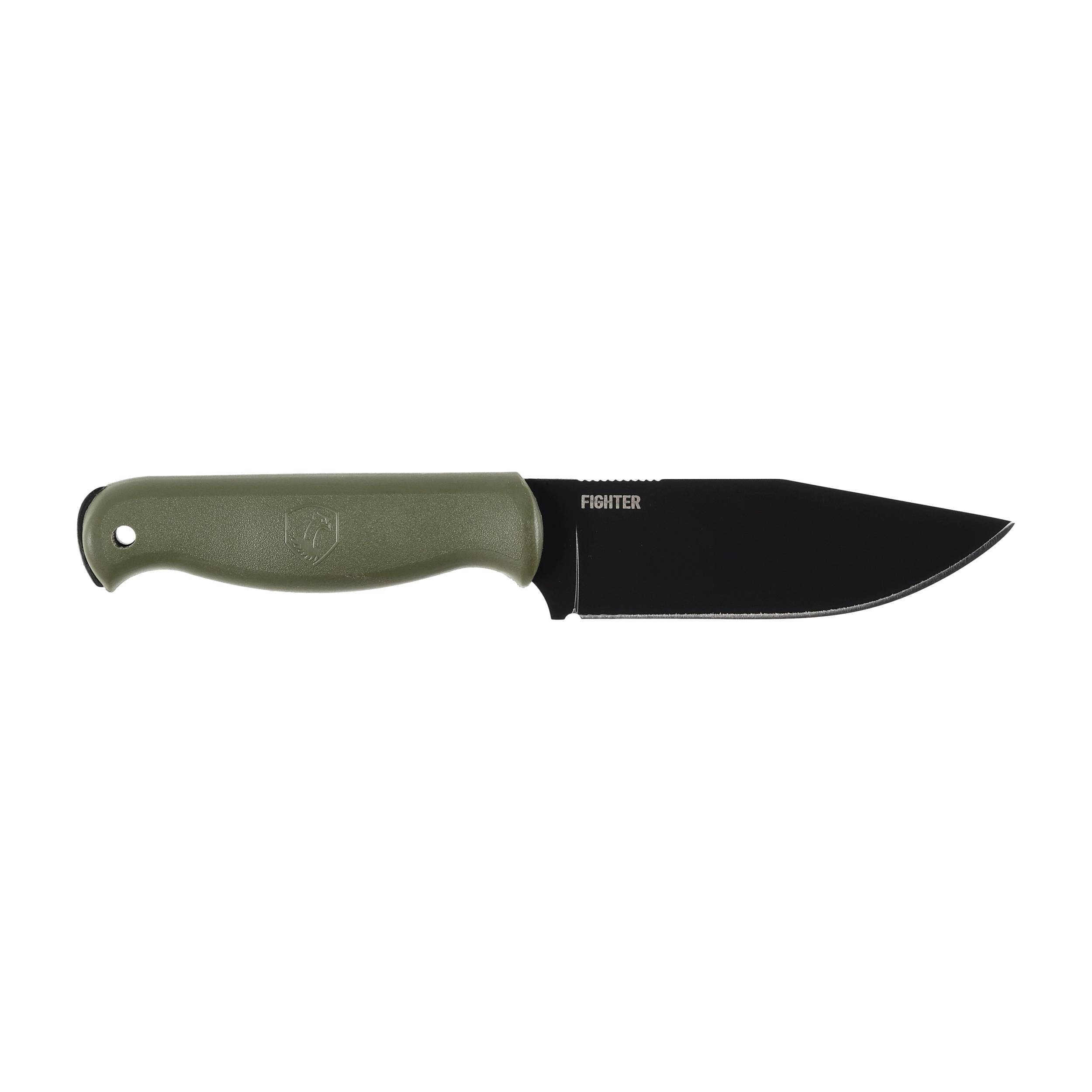 Condor Fighter to nóż ze stałą głownią wykonany w konstrukcji Full-Tang. Został zaprojektowany z myślą o wszechstronnym zastosowaniu. Doskonale sprawdzi się podczas outdoorowego wypadu poza miasto oraz w celach bushcraftowych. Narzędzie ma ostrze ze stali wysokowęglowej 1075, które dodatkowo zostało pokryte powłoką Cerakote, dla zapewnienia większej ochrony przed korozją. Rękojeść wykonano z termoplastycznego polipropylenu. Ten nóż łączy nowoczesny design z wyjątkową funkcjonalnością, będąc narzędziem, na którym możesz polegać w praktycznie każdej sytuacji. Model jest wykonany w kolorze Army Green (zielonym).