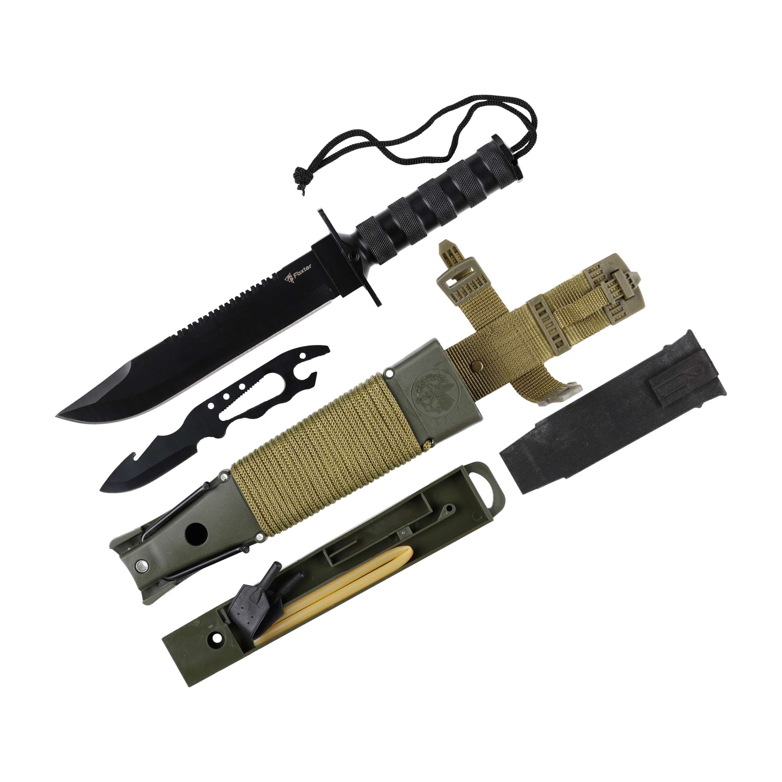 Nóż taktyczny Foxter Rambo zestaw survivalowy 35,5 cm + rzutka