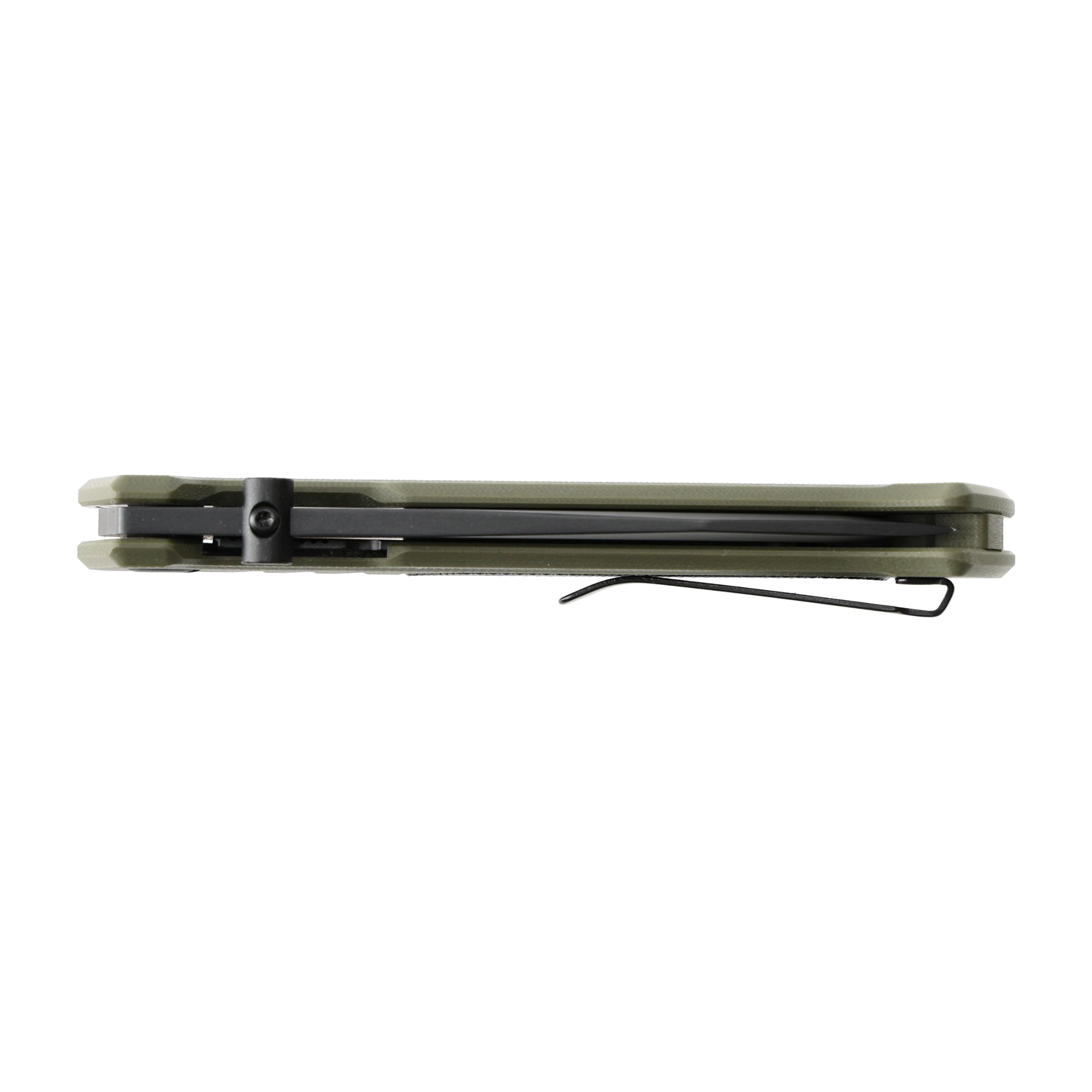 Folder Walther PDP Tanto posiada zielono-czarną rękojeść wykonaną z G10, czyli kompozytu z włókna szklanego i syntetycznej żywicy oraz z dodatkowymi nakładkami z tworzywa FRN. Okładziny mają gładkie krawędzie, zapewniając komfortowy chwyt nawet podczas dłuższej pracy. Dzięki klipsowi Deep Carry nóż można dyskretnie przenosić w kieszeni spodni.