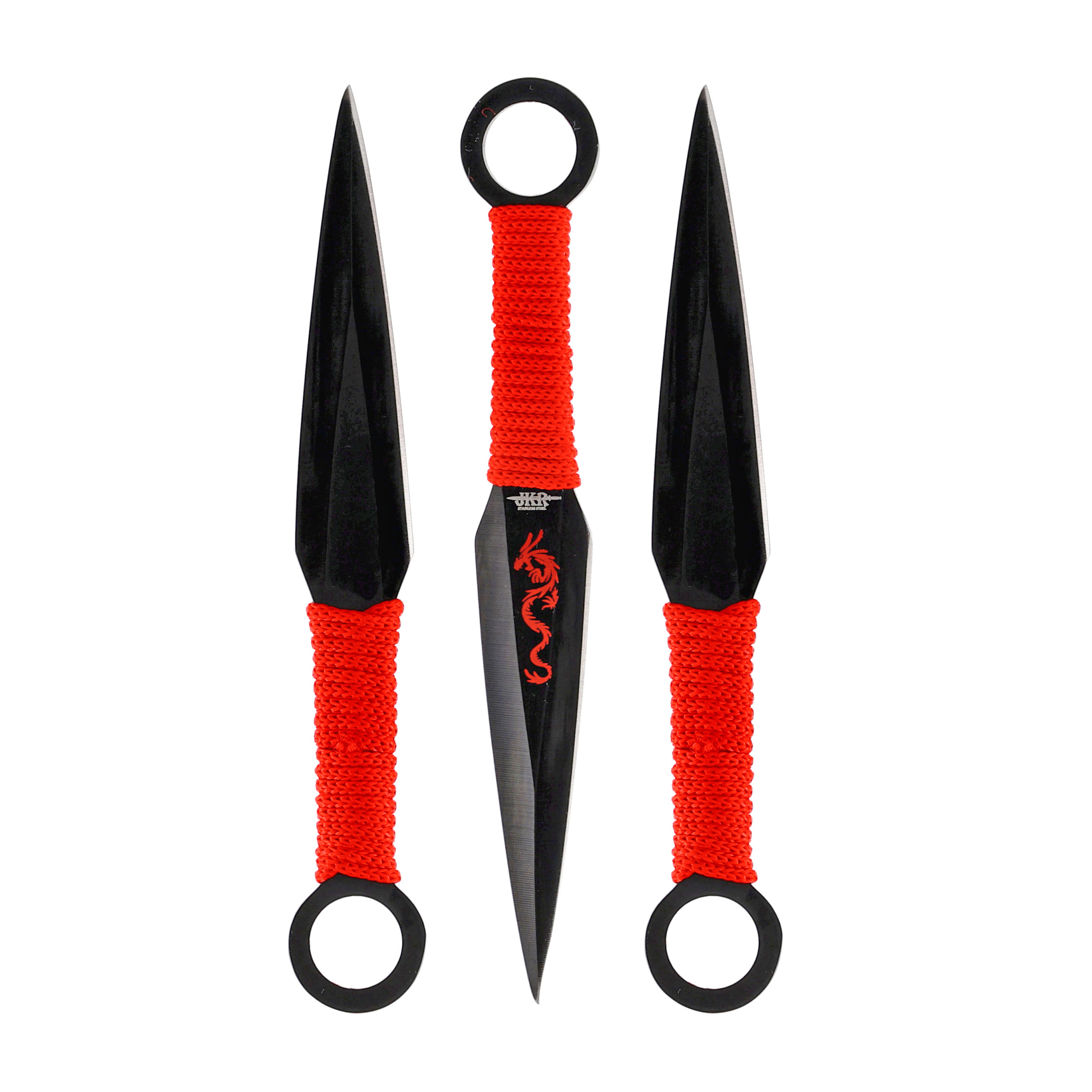 Noże do rzucania Joker, to wysokiej jakości rzutki znanej hiszpańskiej marki. Produkt został wykonany ze stali nierdzewnej oksydowanej, całość jest doskonale wyważona. Rękojeść wykonano techniką cord wrap z wytrzymałej linki nylonowej, zapewniającej dobry chwyt. W zestawie znajduje się kabura na pasek, ułatwiająca przenoszenie i dobywanie noży.