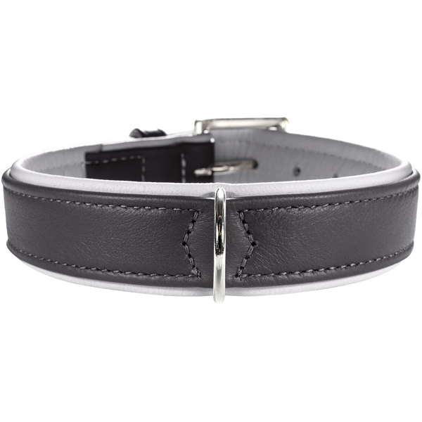 Skóra łosia skandynawskiego uważana jest za jedną z najlepszych na świecie. Ten gatunek skóry cechuje się wysoką miękkością i elastycznością, dlatego obroża wykonana z takiej skóry jest dla psa bardzo wygodna i miła w codziennym noszeniu. Obroża ma stalowe ucho do wpinania smyczy oraz dużą i wygodną do zapinania klamrę.