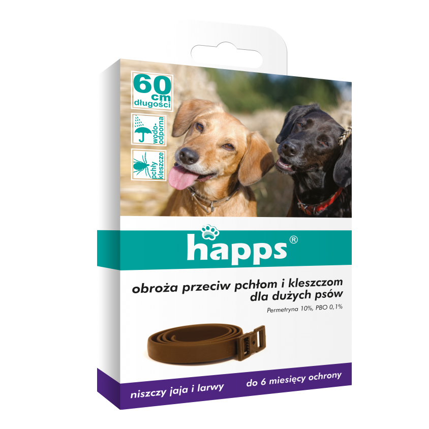 Obroża Happs przeciw pchłom i kleszczom – ochrona do 6 miesięcy